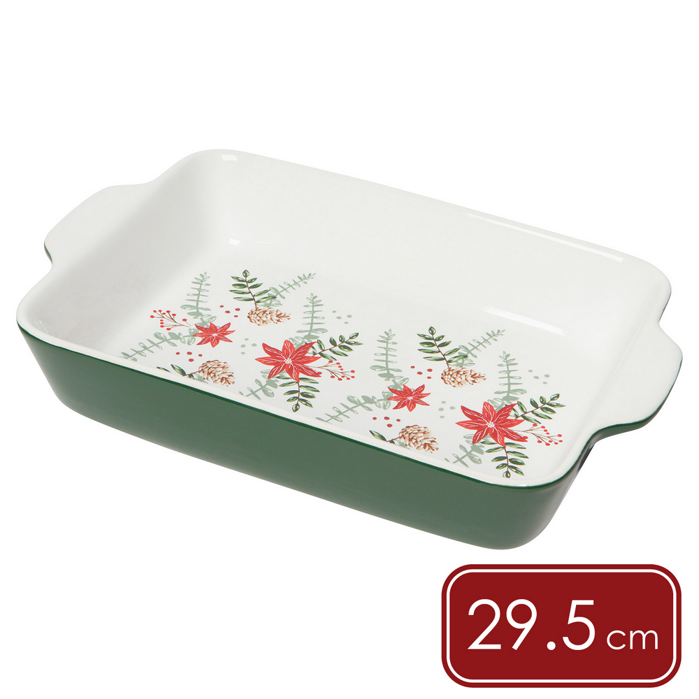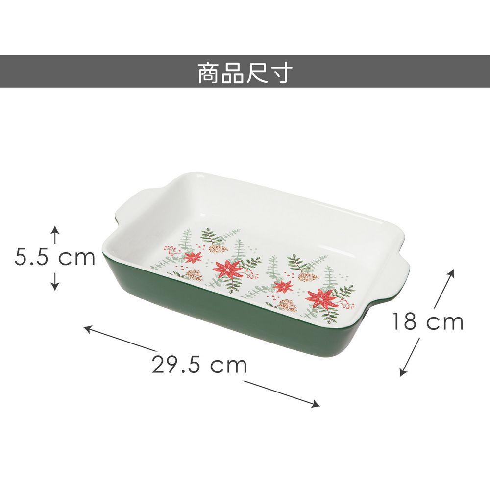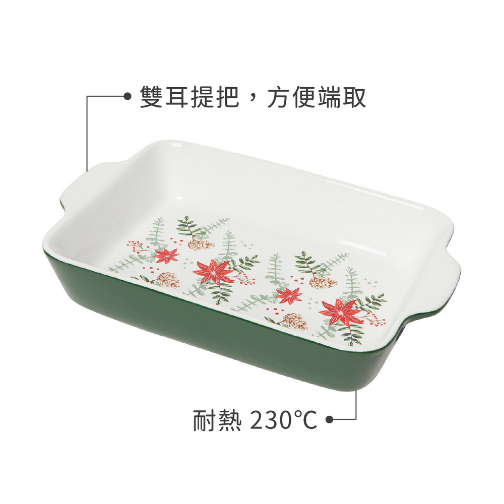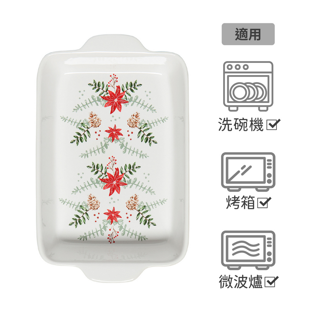 美國 Now Designs By Danica - 雙耳長方石陶烤盤(聖誕紅29.5cm) / 陶瓷烤盤