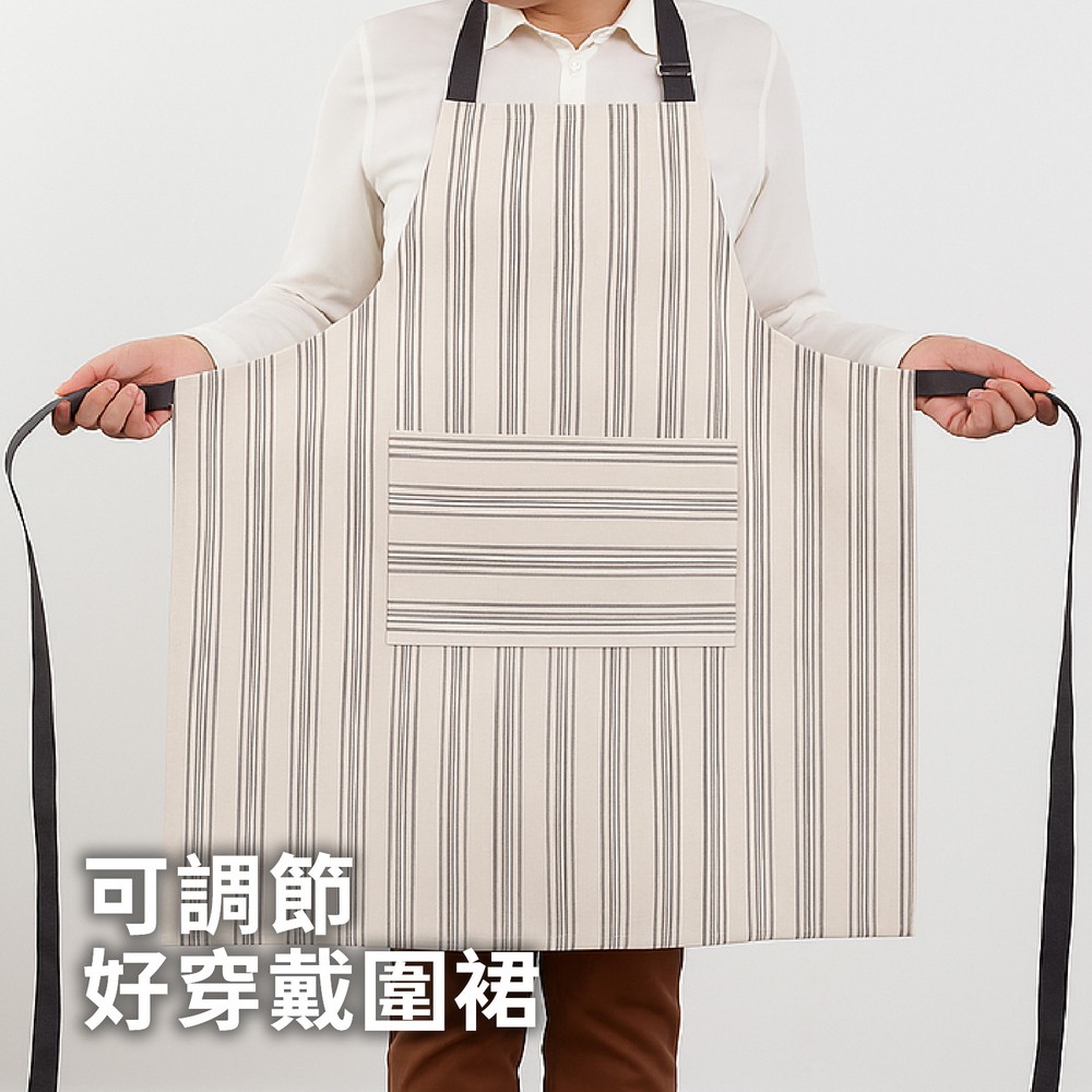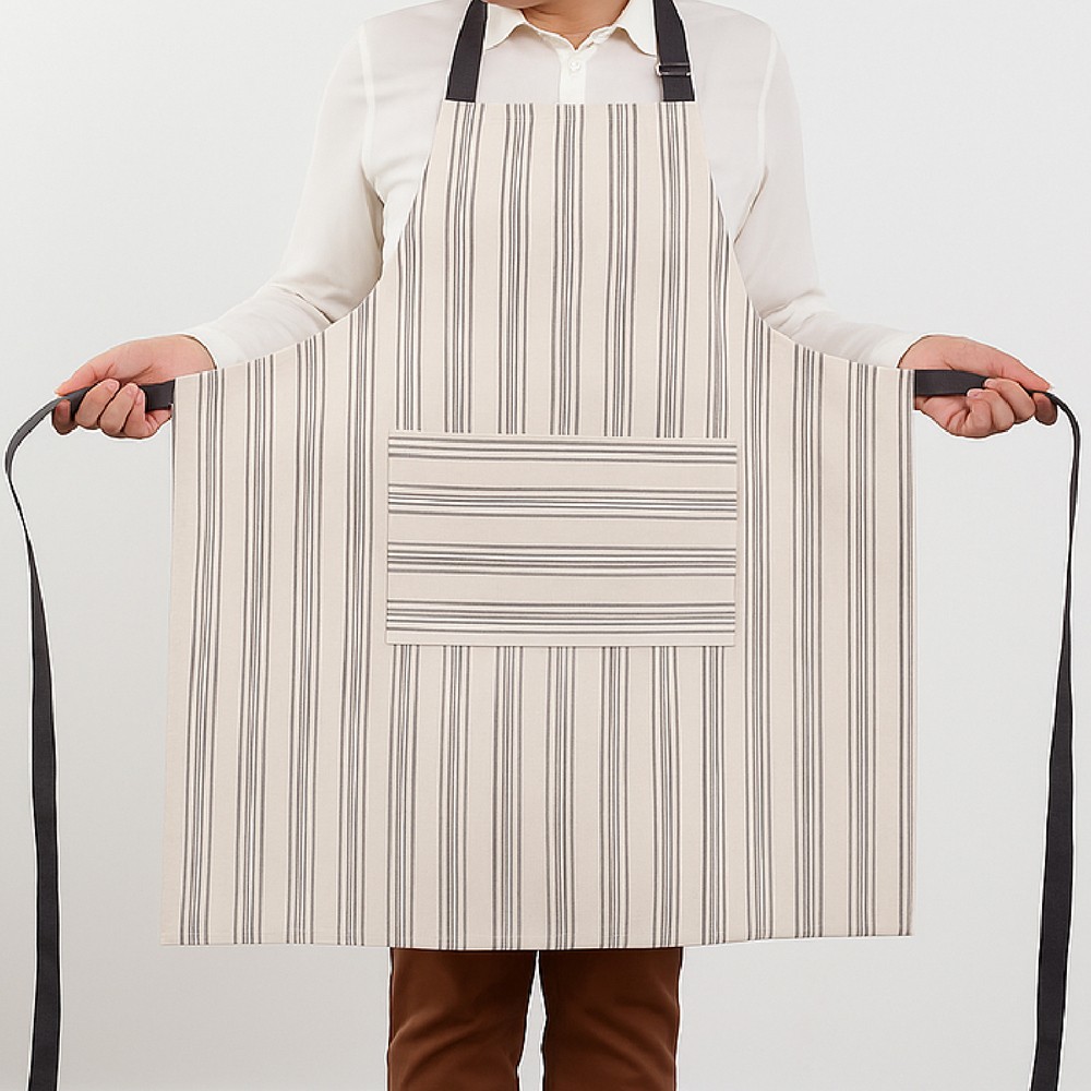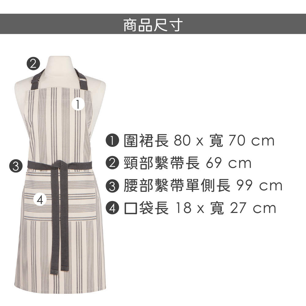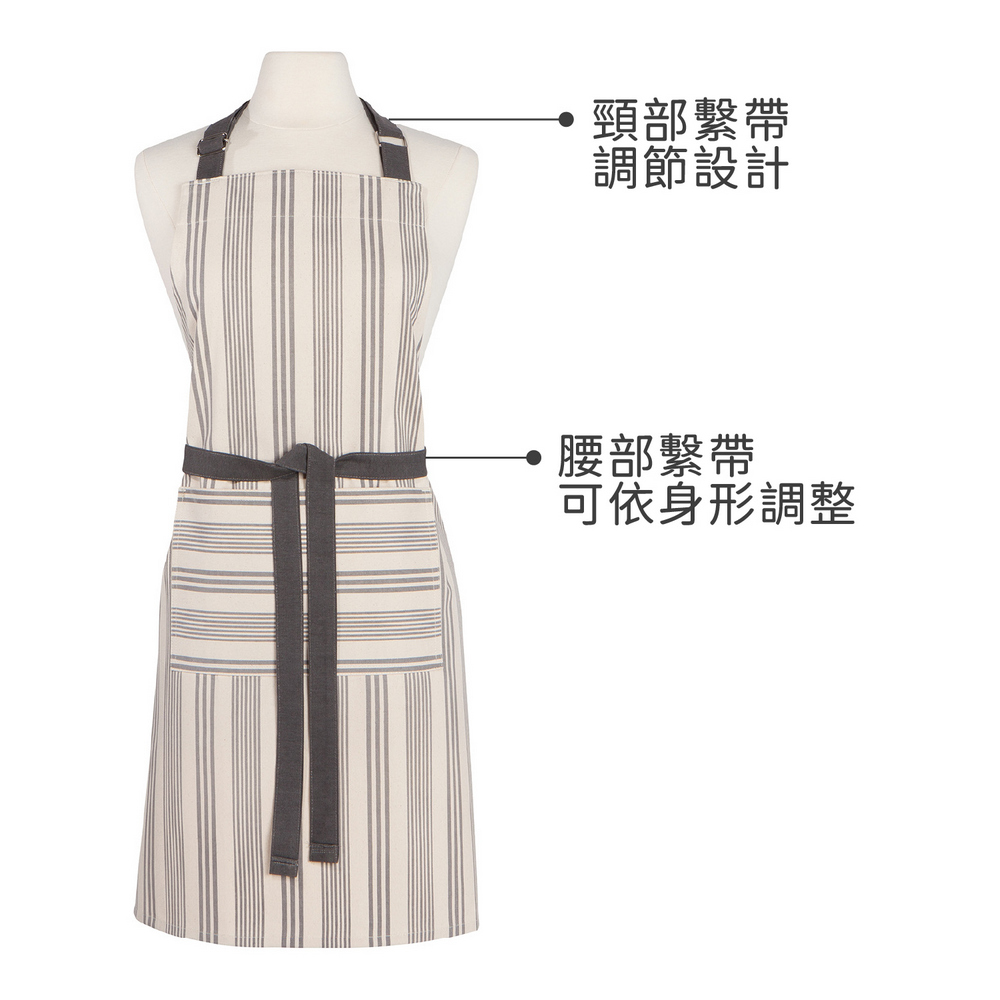 美國 Now Designs By Danica - 平口單袋圍裙(灰條紋) / 廚房圍裙 料理圍裙 烘焙圍裙