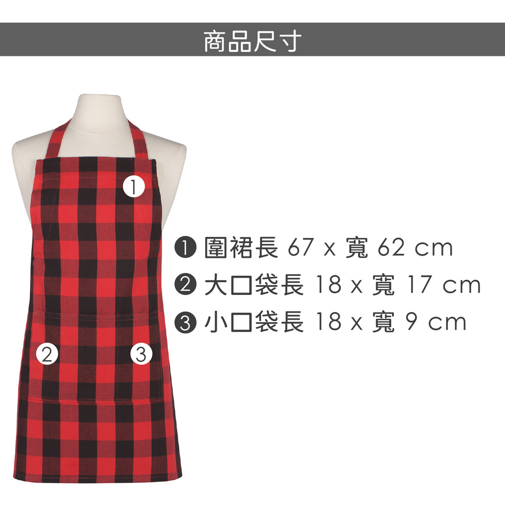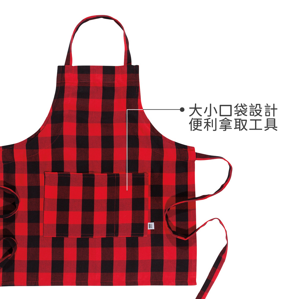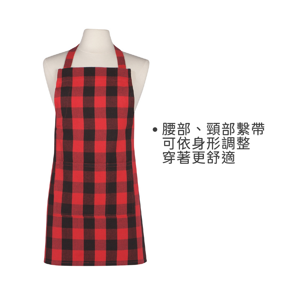 美國 Now Designs By Danica - 好調節平口圍裙(紅黑格紋) / 廚房圍裙 料理圍裙 烘焙圍裙