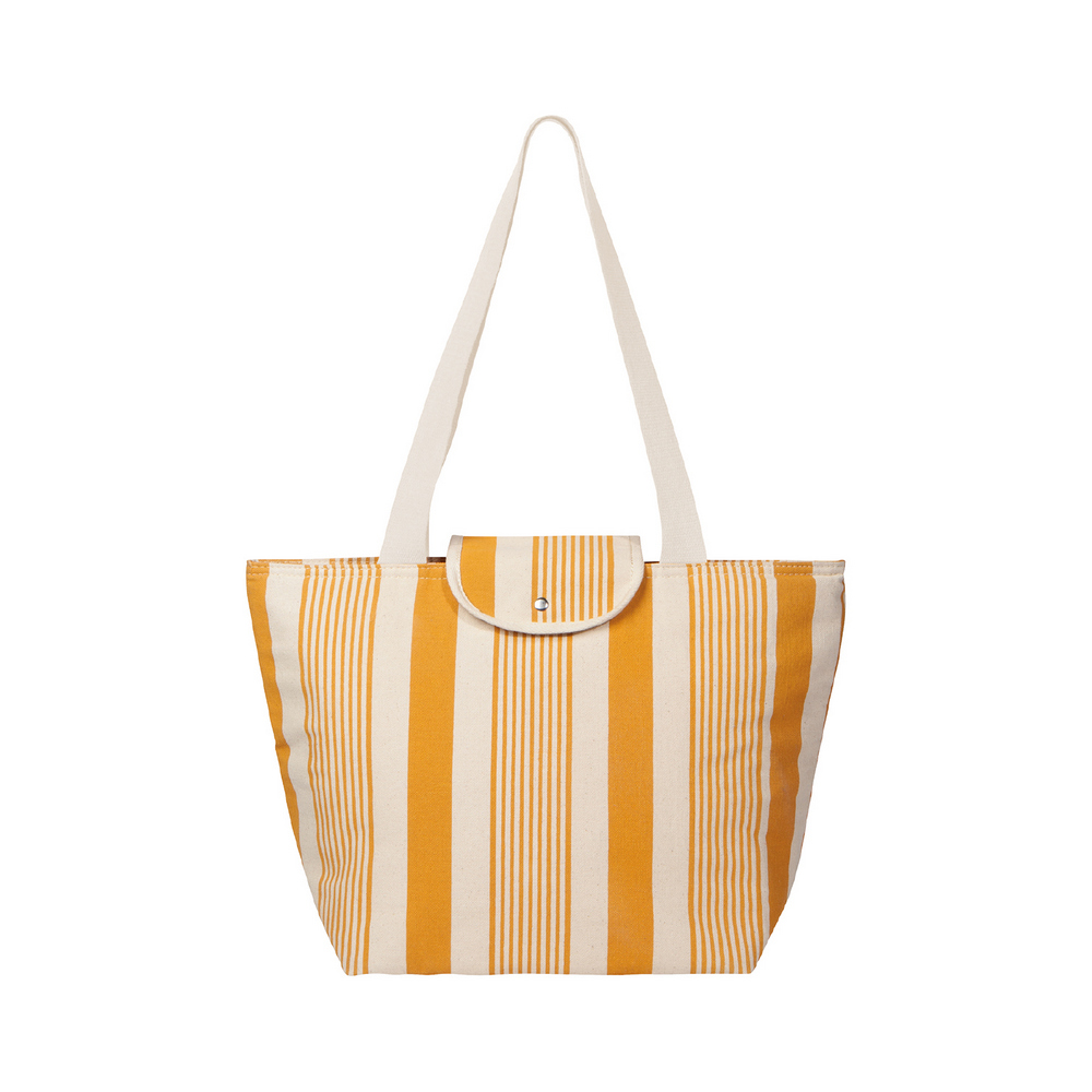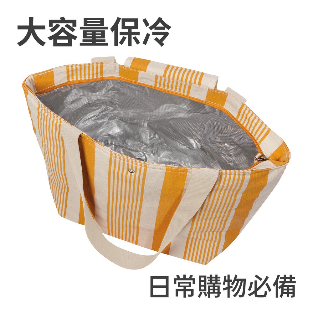 美國 Now Designs By Danica - 摺疊肩背托特保冷袋(桔黃條紋) / 保溫袋 保冰袋 保冷便當袋