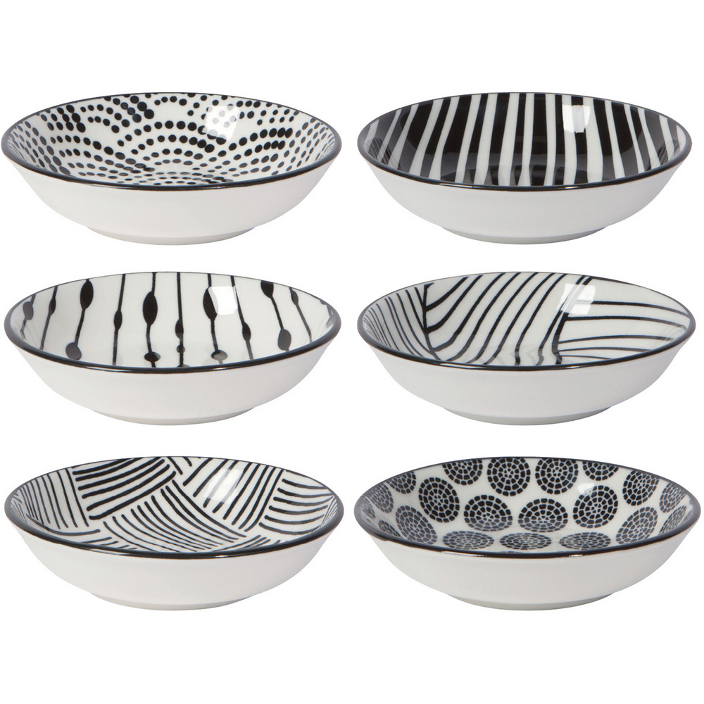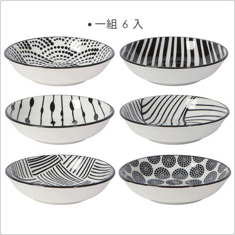 美國 Now Designs By Danica - 紋繪瓷製醬料碟6入(黑9cm) / 醬碟 醬油碟 小碟子 小菜碟