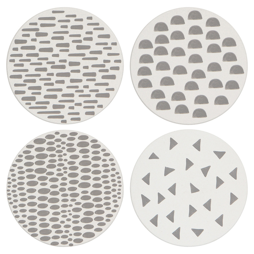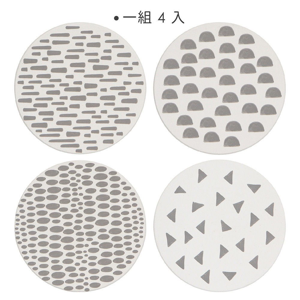 美國 Now Designs By Danica - 石陶吸水杯墊4入(圖騰灰)