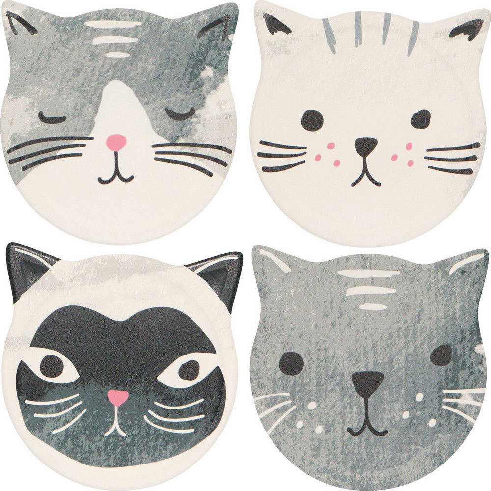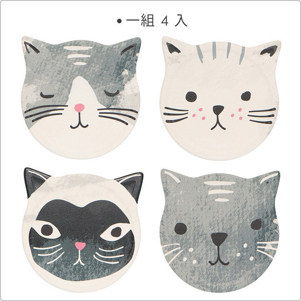 美國 Now Designs By Danica - 石陶吸水杯墊4入(貓咪)