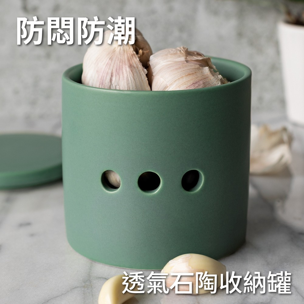 美國 Now Designs By Danica - 石陶透氣收納罐(翡翠綠) / 大蒜收納罐 辛香料收納瓶