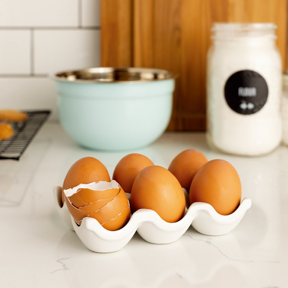 美國 Now Designs By Danica - 6格石陶蛋盒(雲白) / 蛋盒 雞蛋收納盒