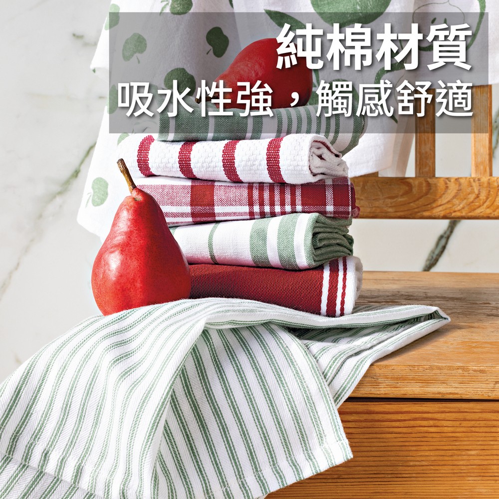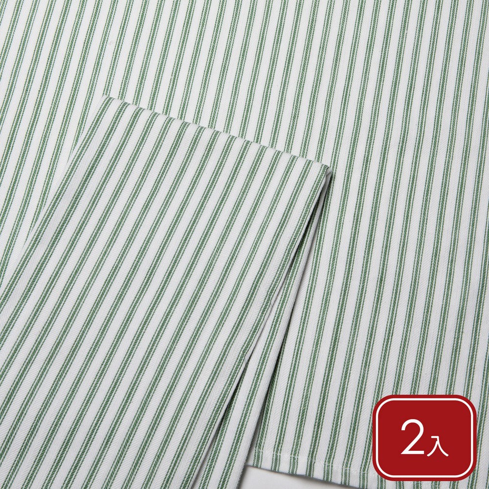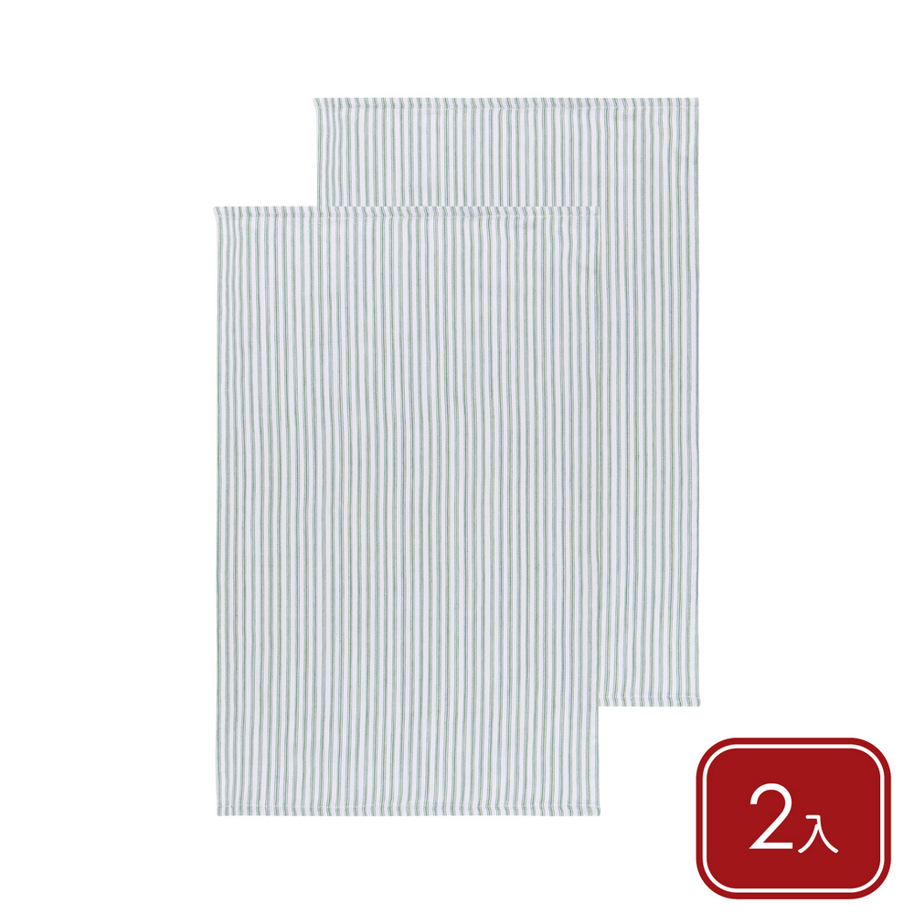 美國 Now Designs By Danica - 純棉擦拭布2入(草綠條紋71x46cm) / 廚房抹布 清潔布 擦拭布 茶巾