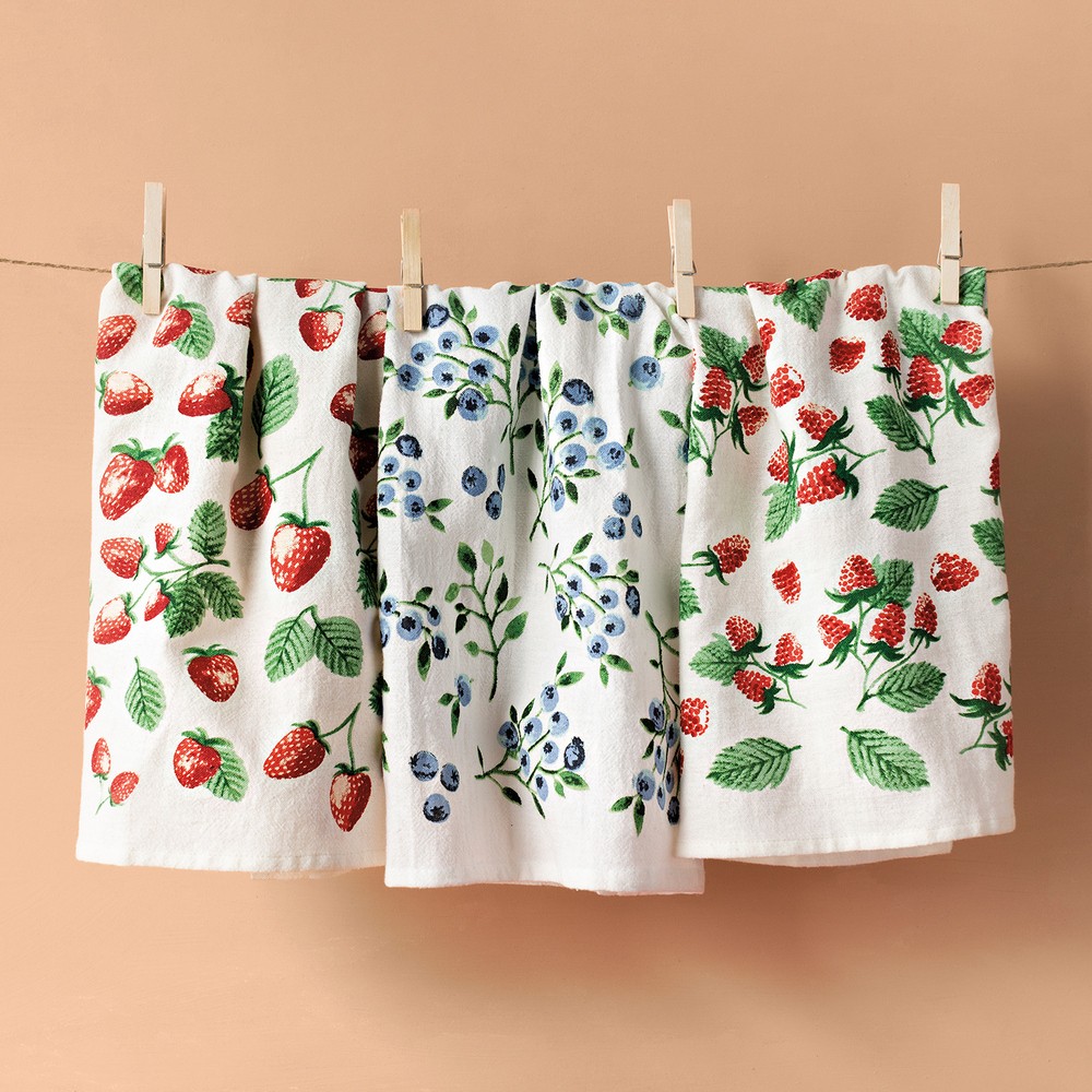 美國 Now Designs By Danica - 純棉擦拭布3入(莓莓總匯76x51cm) / 廚房抹布 清潔布 擦拭布 茶巾