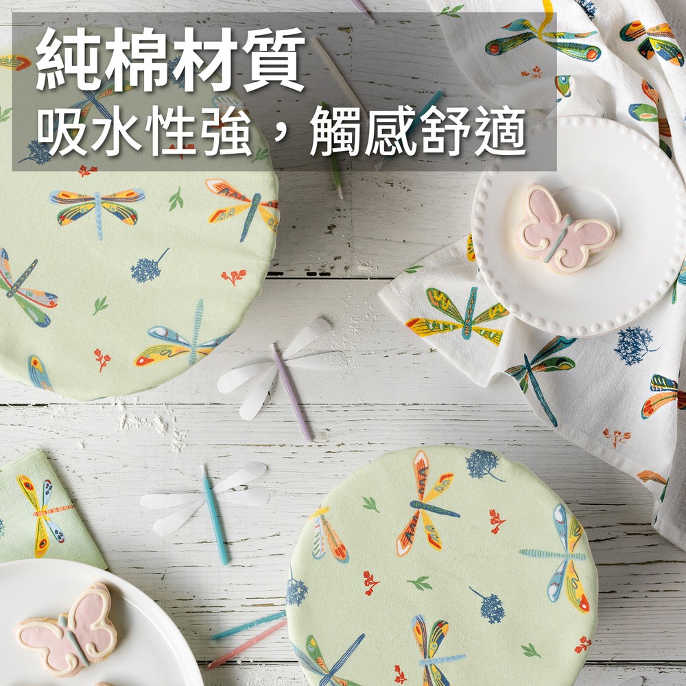美國 Now Designs By Danica - 純棉擦拭布3入(水靈蜻蜓76x51cm) / 廚房抹布 清潔布 擦拭布 茶巾