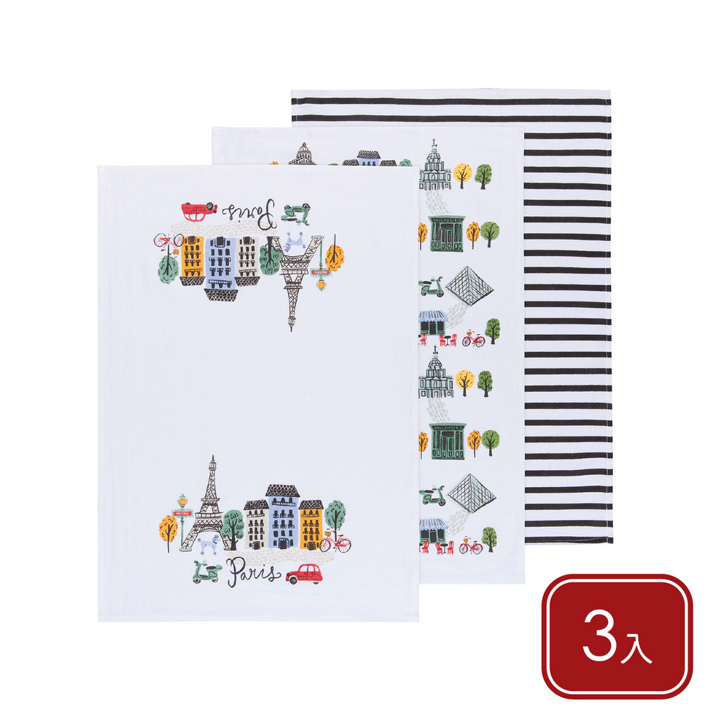 美國 Now Designs By Danica - 純棉擦拭布3入(巴黎街景76x51cm) / 廚房抹布 清潔布 擦拭布 茶巾
