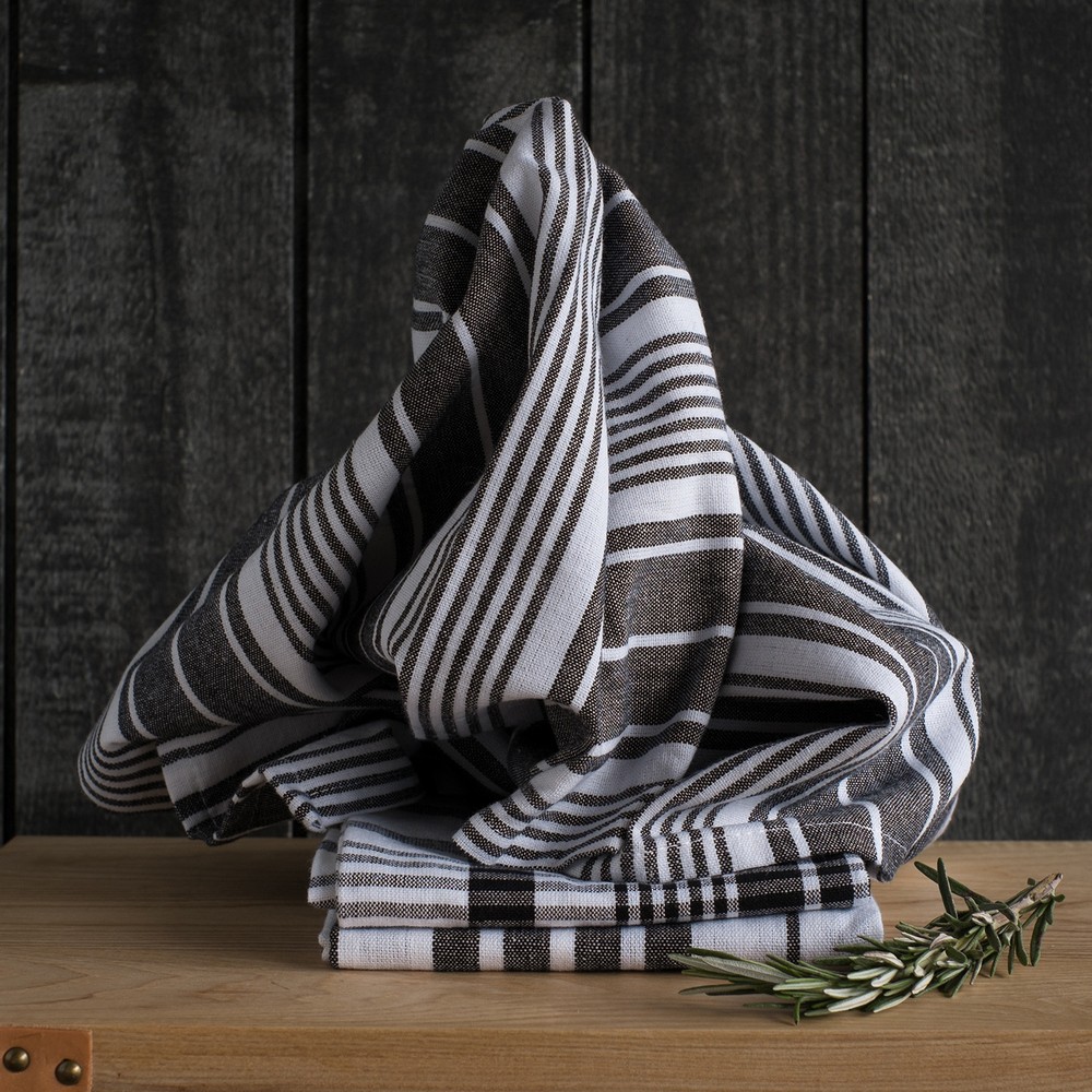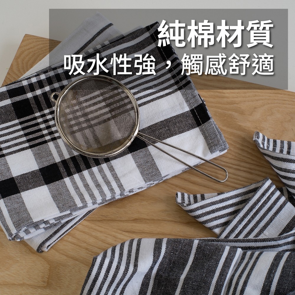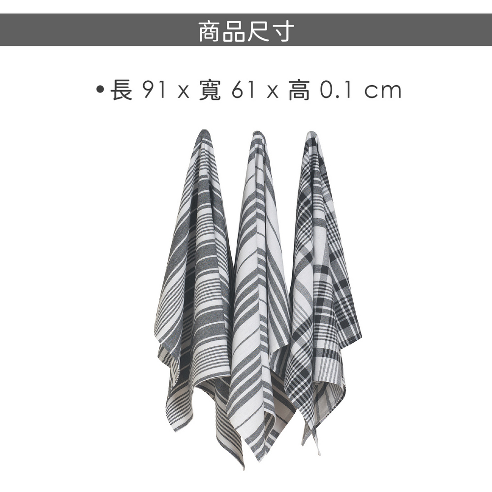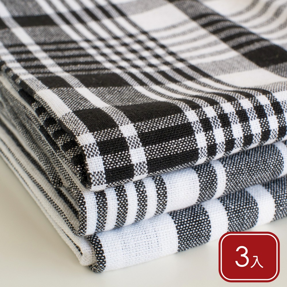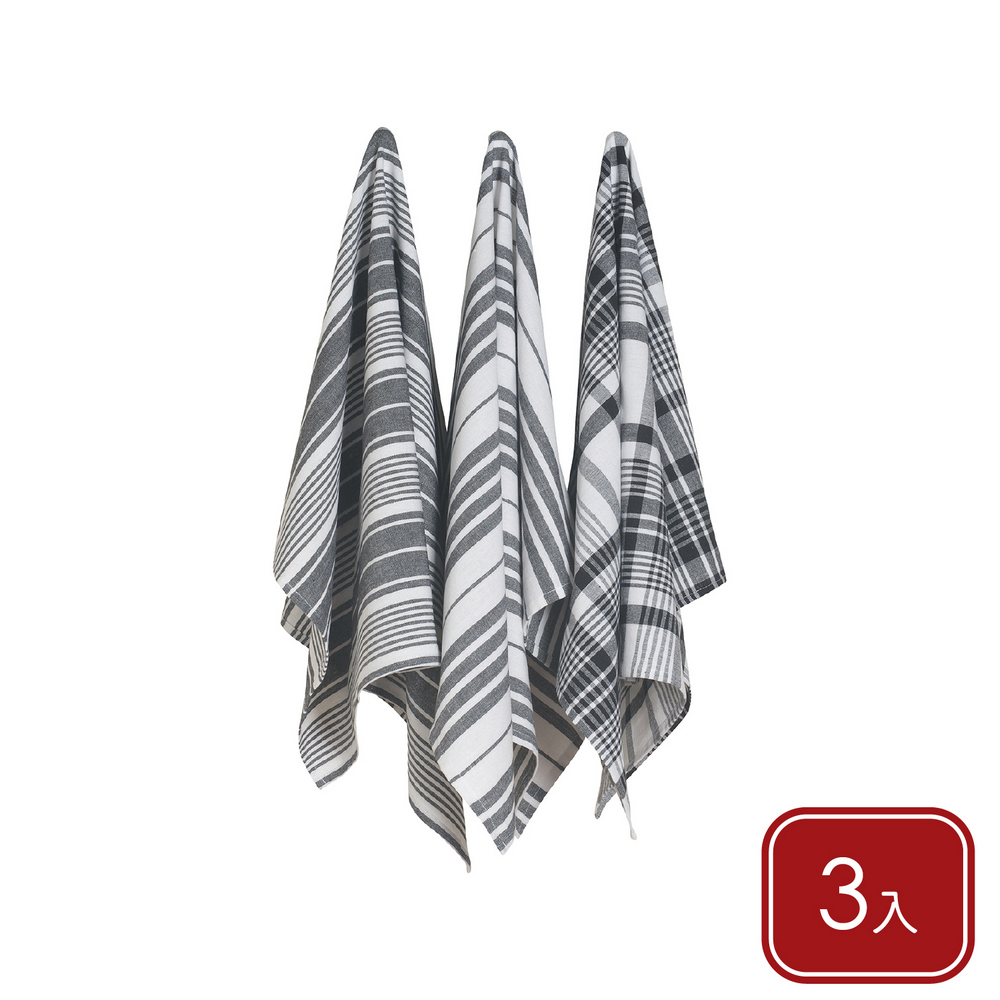 美國 Now Designs By Danica - Jumbo純棉擦拭布3入(墨黑格紋91x61cm) / 廚房抹布 清潔布 擦拭布 茶巾