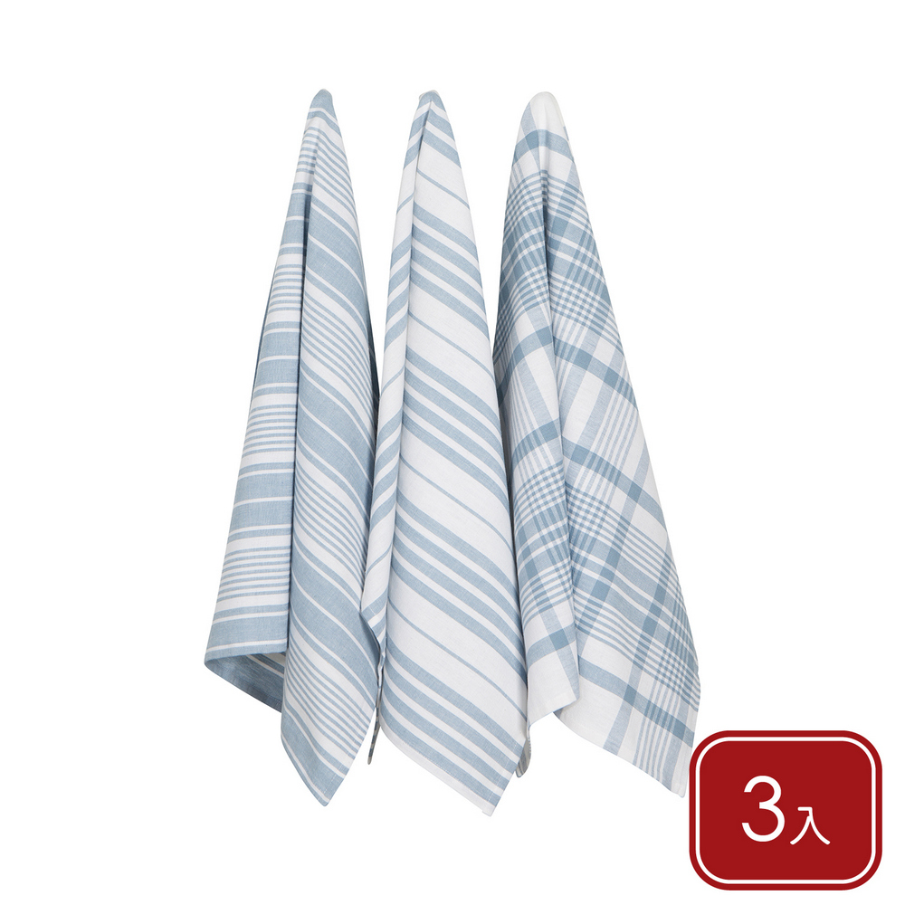 美國 Now Designs By Danica - Jumbo純棉擦拭布3入(水藍格紋91x61cm) / 廚房抹布 清潔布 擦拭布 茶巾
