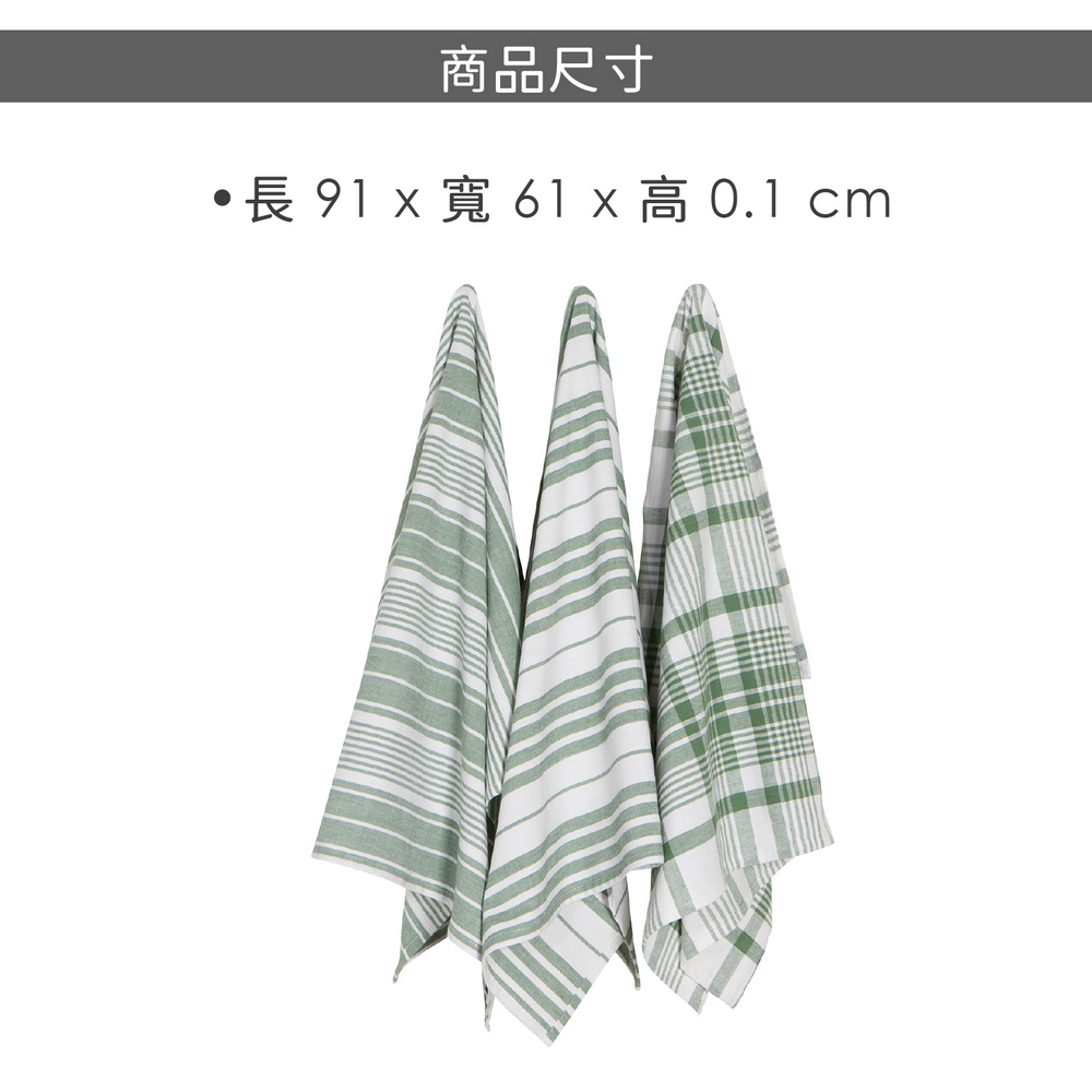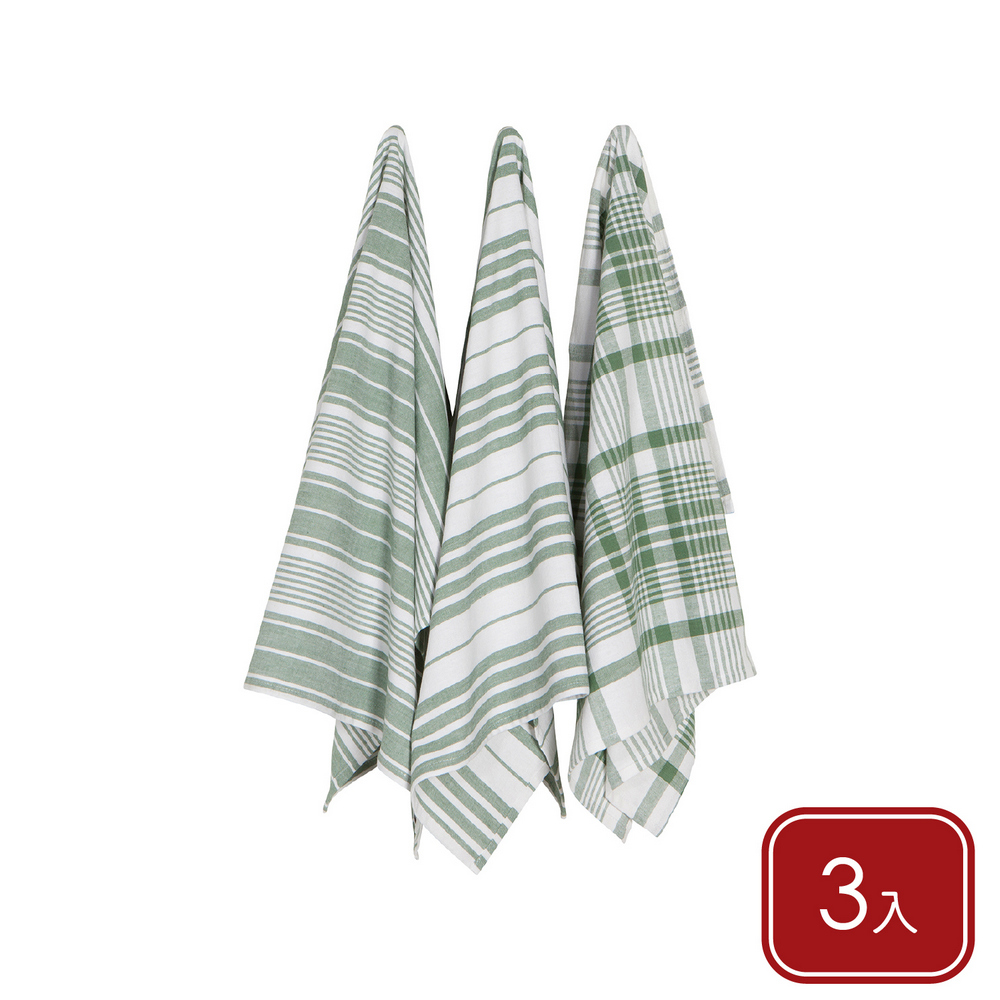 美國 Now Designs By Danica - Jumbo格紋純棉擦拭布3入(茶綠格紋91x61cm) / 廚房抹布 清潔布 擦拭布 茶巾