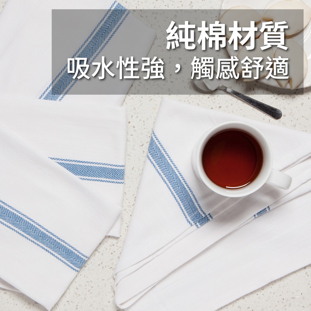 美國 Now Designs By Danica - Brooklyn Stripe純棉擦拭布4入(水藍條紋71x46cm) / 廚房抹布 清潔布 擦拭布 茶巾