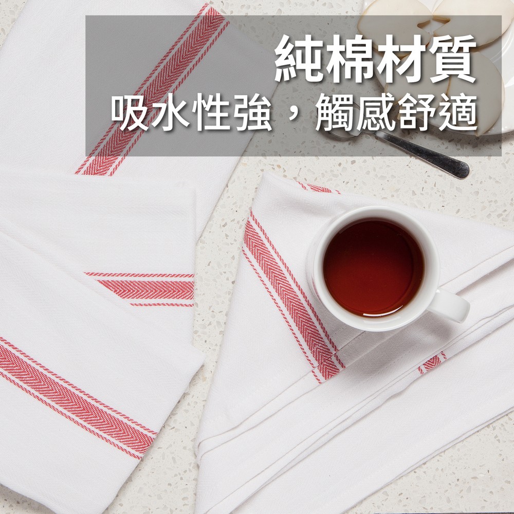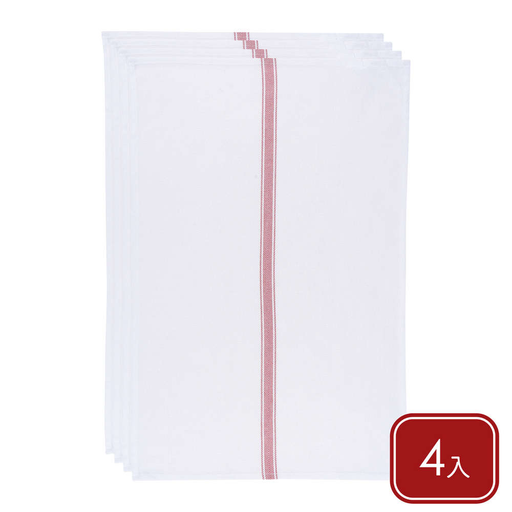 美國 Now Designs By Danica - Brooklyn Stripe純棉擦拭布4入(殷紅條紋71x46cm) / 廚房抹布 清潔布 擦拭布 茶巾