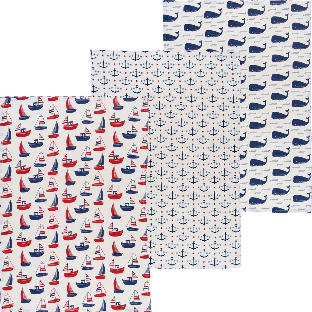 美國 Now Designs By Danica - 純棉擦拭布3入(航海冒險) / 廚房抹布 清潔布 擦拭布