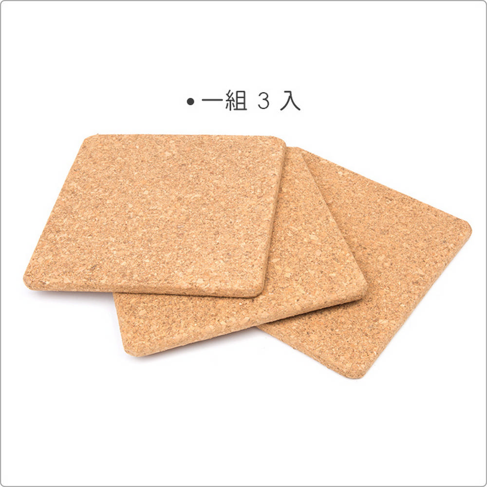 美國 FOX RUN BRANDS - 軟木隔熱墊3入(方) / 桌墊 鍋墊 餐墊 耐熱墊 杯墊