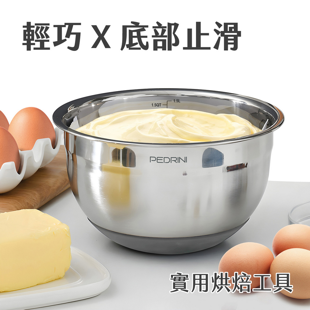 義大利 PEDRINI - Gadget不鏽鋼止滑打蛋盆(1.5L) / 不鏽鋼攪拌盆 料理盆 洗滌盆 備料盆