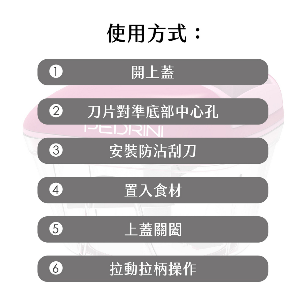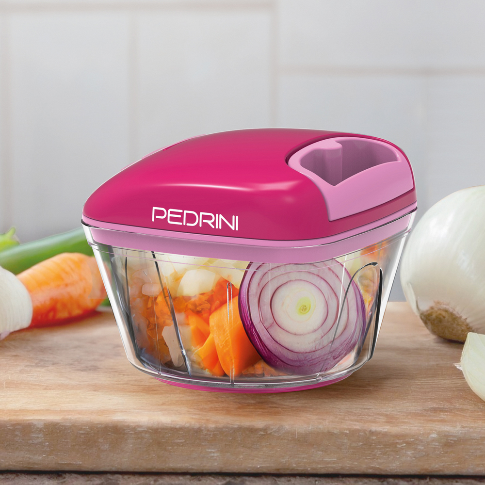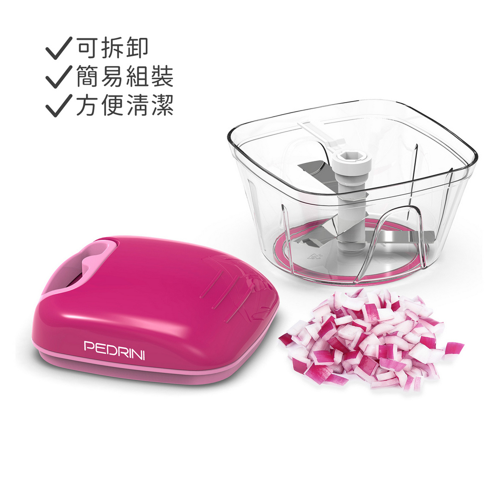 義大利 PEDRINI - Gadget手拉式旋轉切碎器(桃紅300ml) / 手拉式食物料理機 細碎器 切菜機