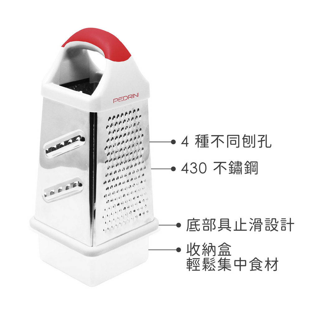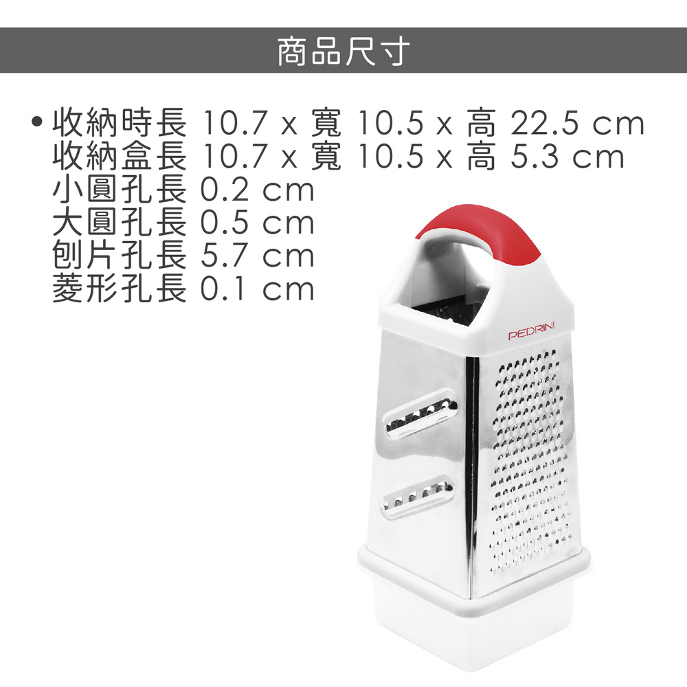 義大利 PEDRINI - Gadget收納盒+4in1筒型起司檸檬刨刀(紅) / 刨絲刀 切絲器