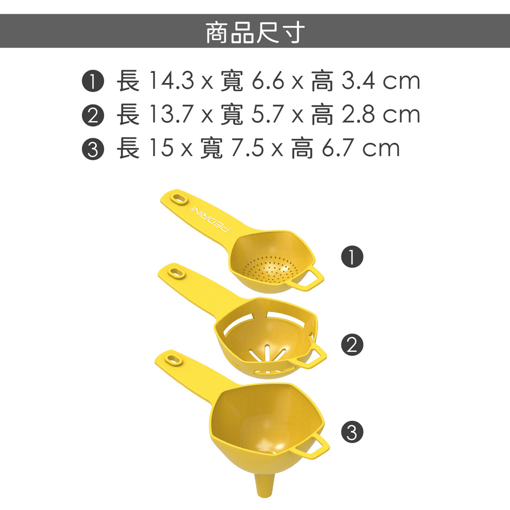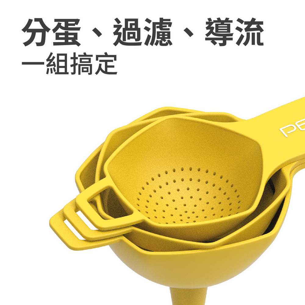 義大利 PEDRINI - Gadget蛋黃分離器+濾杓漏斗組(橙黃) / 漏斗 過濾杓 蛋白分離