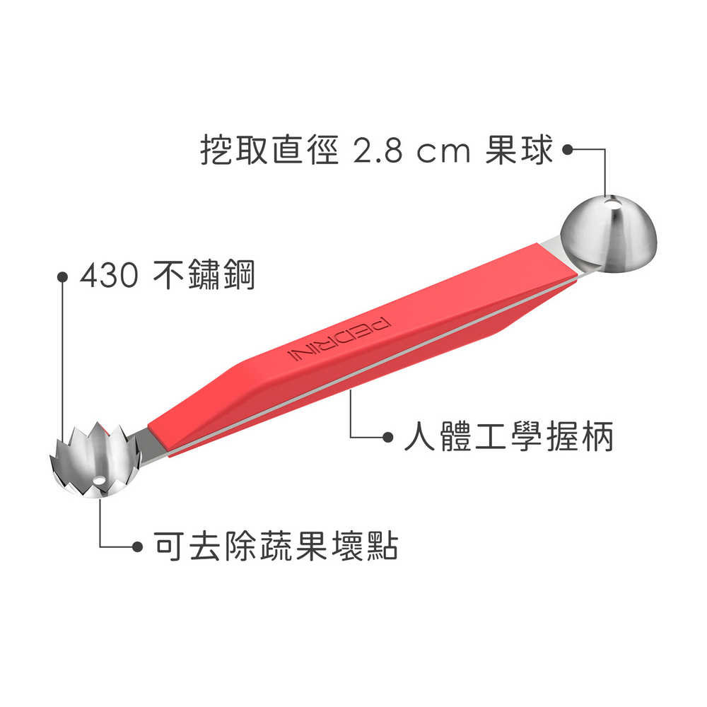 義大利 PEDRINI - Gadget 2in1去蒂水果挖球器 / 蛋糕裝飾 沙拉點綴