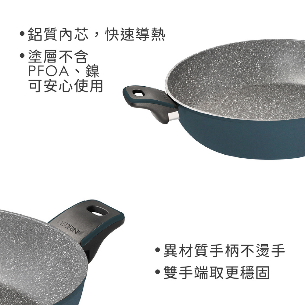 義大利 PEDRINI - EvoTek不沾雙耳平底鍋(32cm) / 平煎鍋 不沾鍋 IH爐適用 雙柄鍋