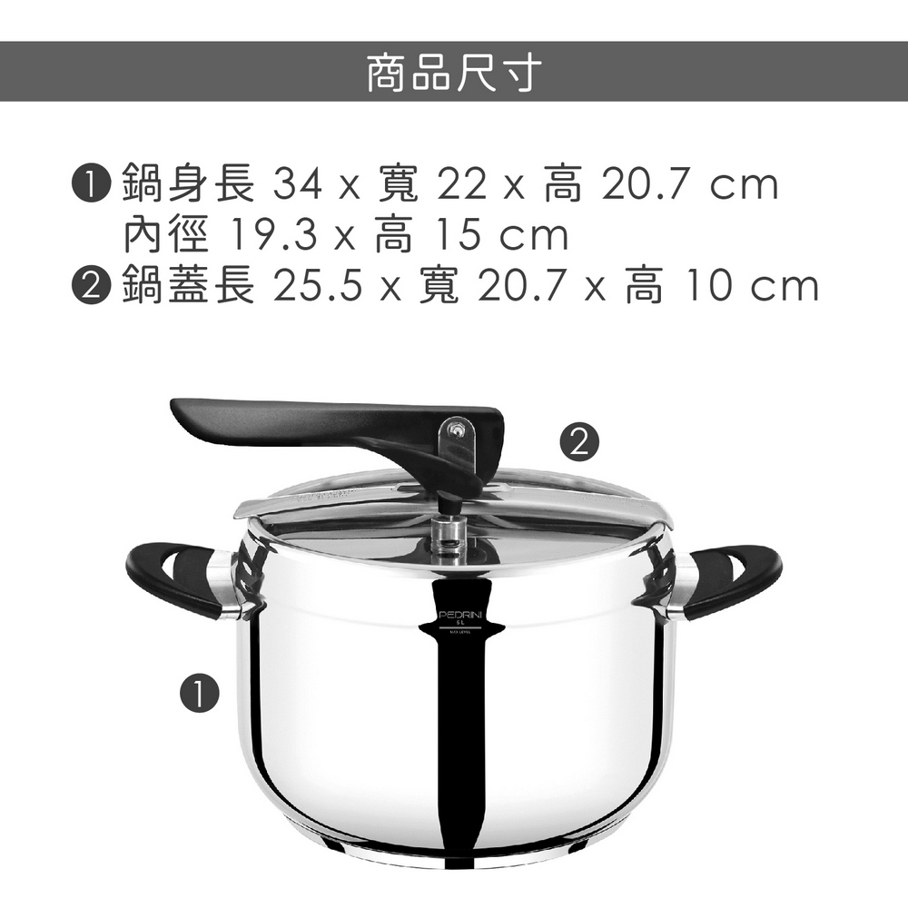 義大利 PEDRINI - Promo不鏽鋼壓力鍋(5L) / 可電磁爐 快鍋 高速鍋 快煮鍋 節能鍋 高壓鍋