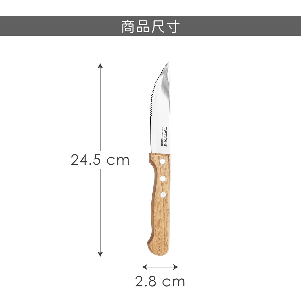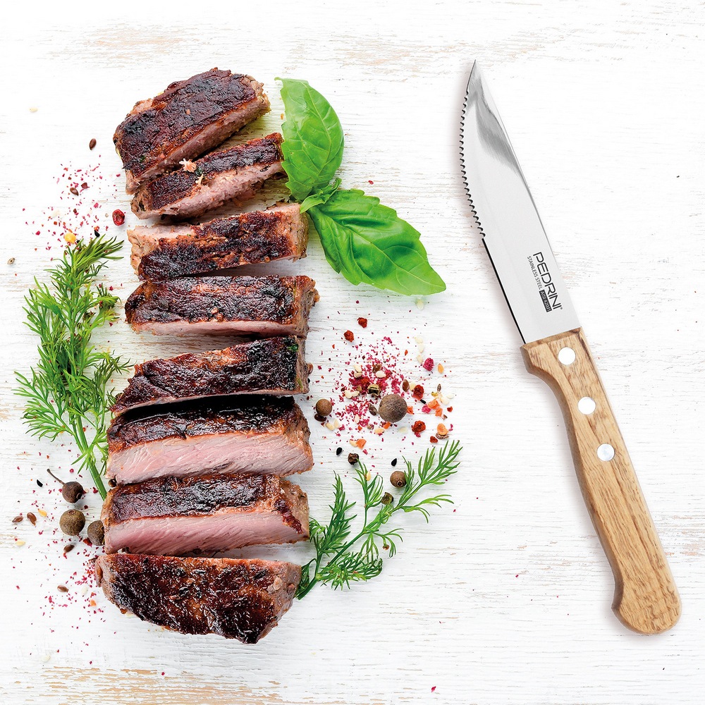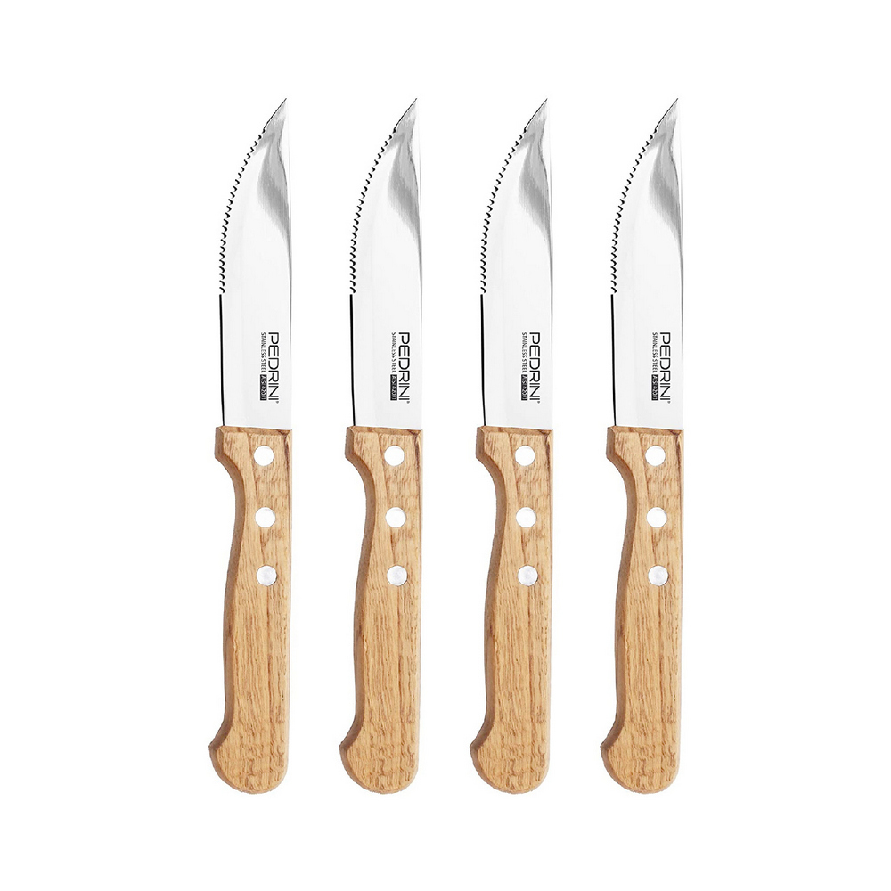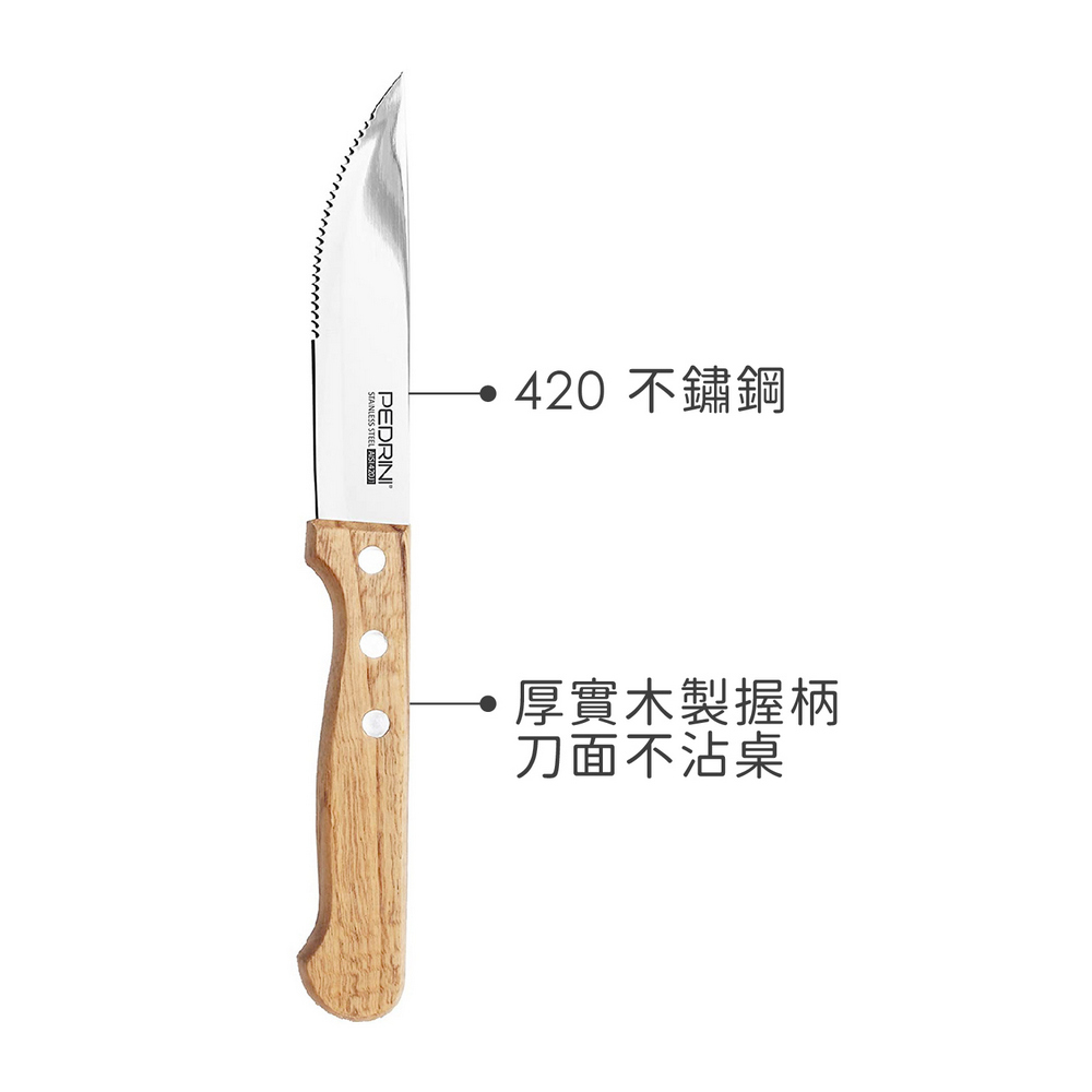 義大利 PEDRINI - Gadget木柄三鉚接牛排刀4入(刀面12cm) / 西餐刀 餐刀 鐵板刀