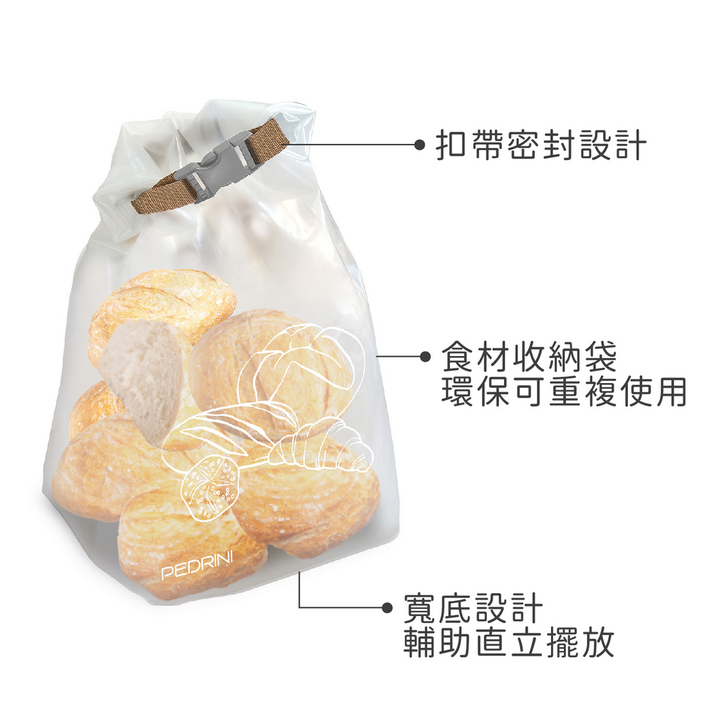 義大利 PEDRINI - Fresh可扣式密封食物袋(麵包) / 環保密封袋 保鮮收納袋