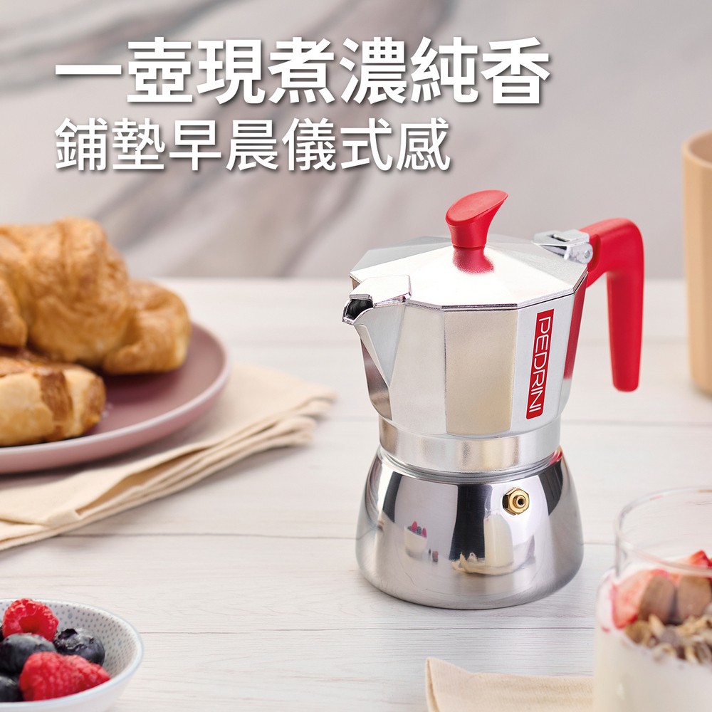 義大利 PEDRINI - Aroma義式摩卡壺(胭紅3杯) / 濃縮咖啡壺 摩卡咖啡壺 espresso