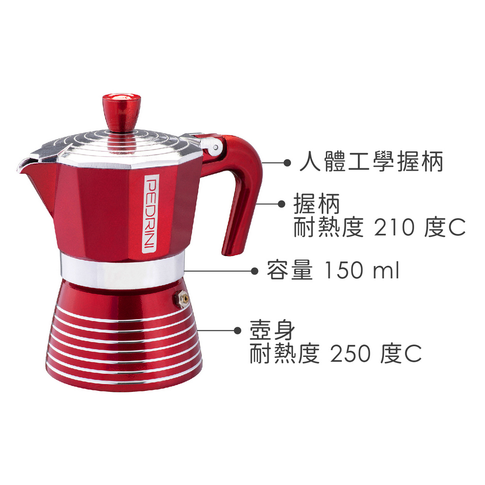 義大利 PEDRINI - Infinity義式摩卡壺(紅3杯) / 濃縮咖啡 摩卡咖啡壺