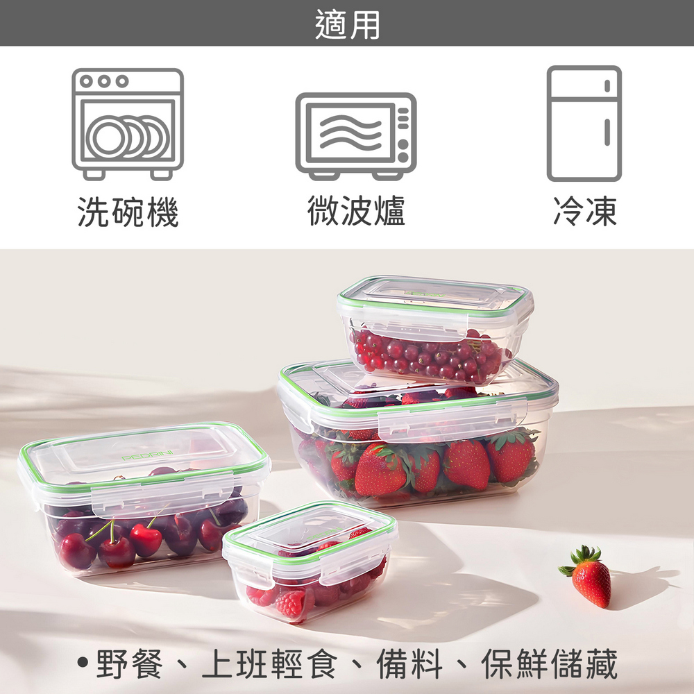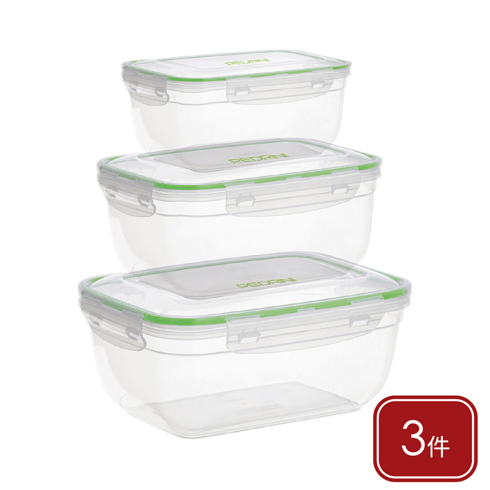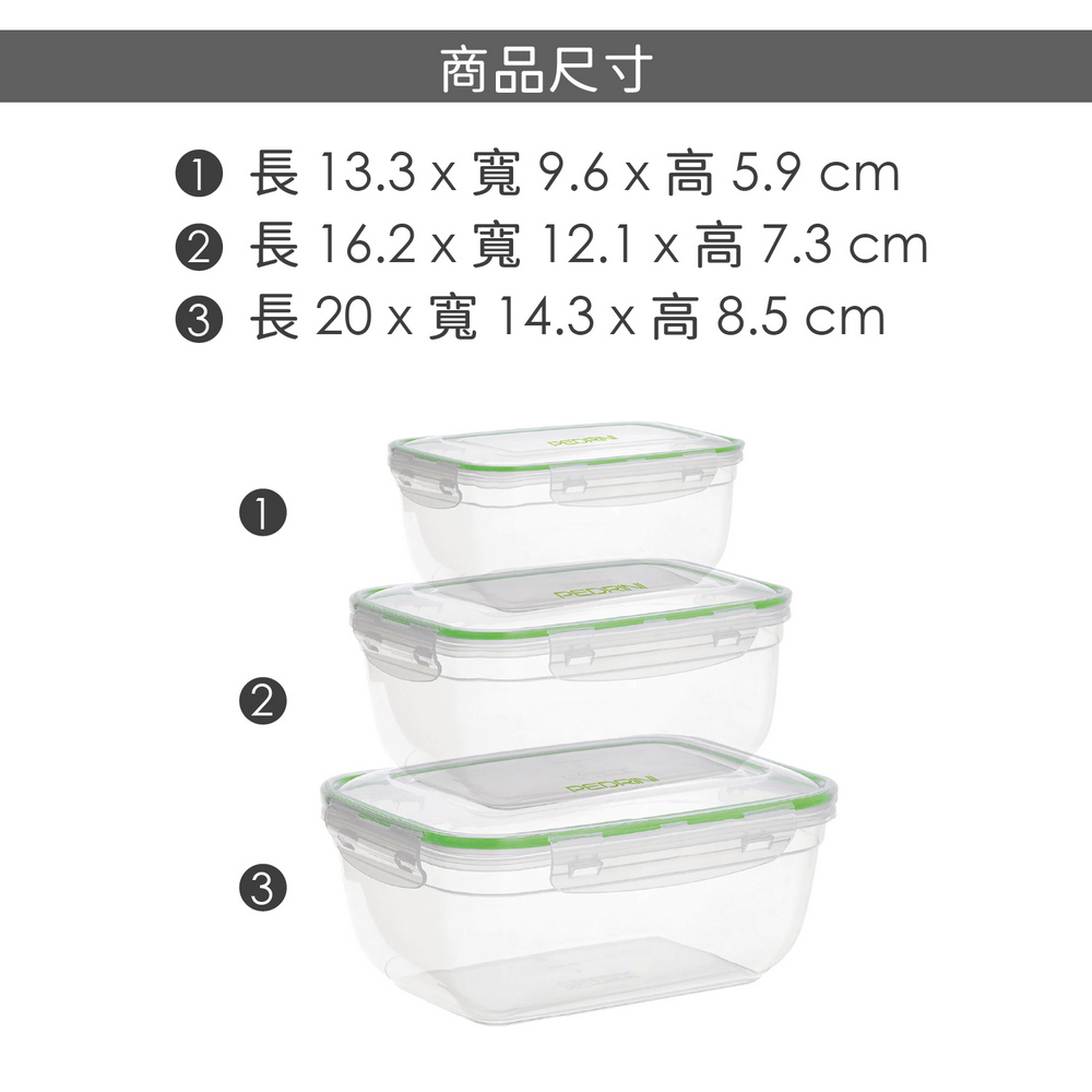 義大利 PEDRINI - Fresh可微波密封保鮮盒3件(綠) / 食物收納盒 環保餐盒 便當盒