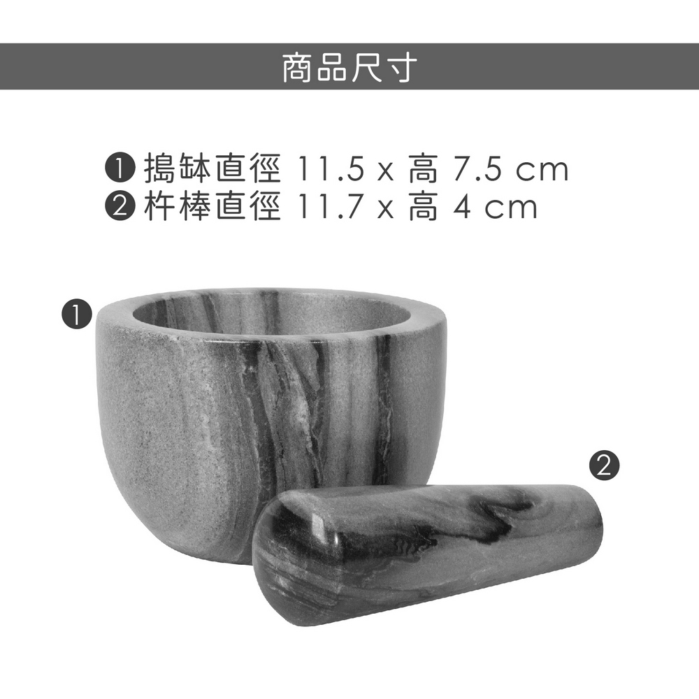 加拿大 danica studio - Heirloom大理石磨搗組(流紋灰11.5cm) / 研磨缽 磨藥機 搗泥器 杵臼 搗缽