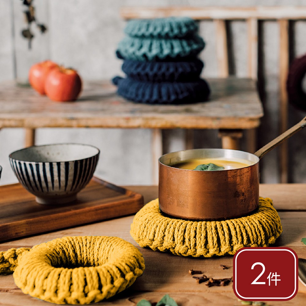 加拿大 danica studio - Heirloom純棉針織圓形隔熱墊2件(芥末黃) / 鍋墊 耐熱墊