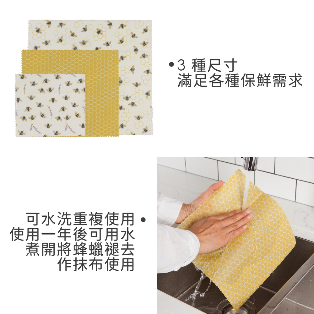 加拿大 danica studio - Ecologie蜂蠟保鮮布3件(蜜蜂) / 保鮮膜 保鮮套 飯菜罩