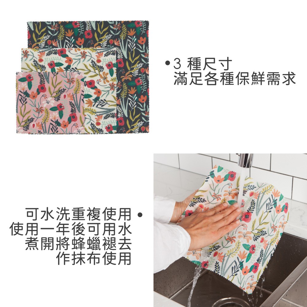 加拿大 danica studio - Ecologie蜂蠟保鮮布3件(花卉) / 保鮮膜 保鮮套 飯菜罩
