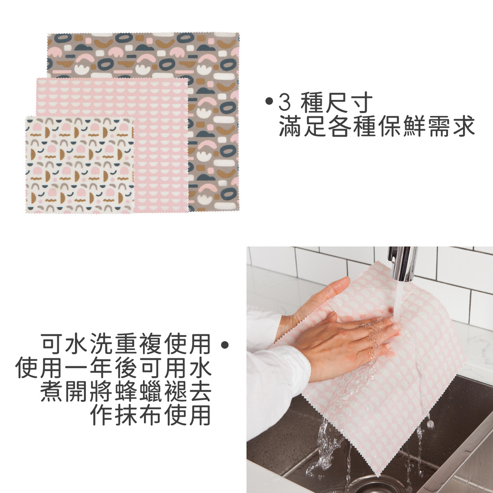 加拿大 danica studio - Ecologie蜂蠟保鮮布3件(幾何) / 保鮮膜 保鮮套 飯菜罩