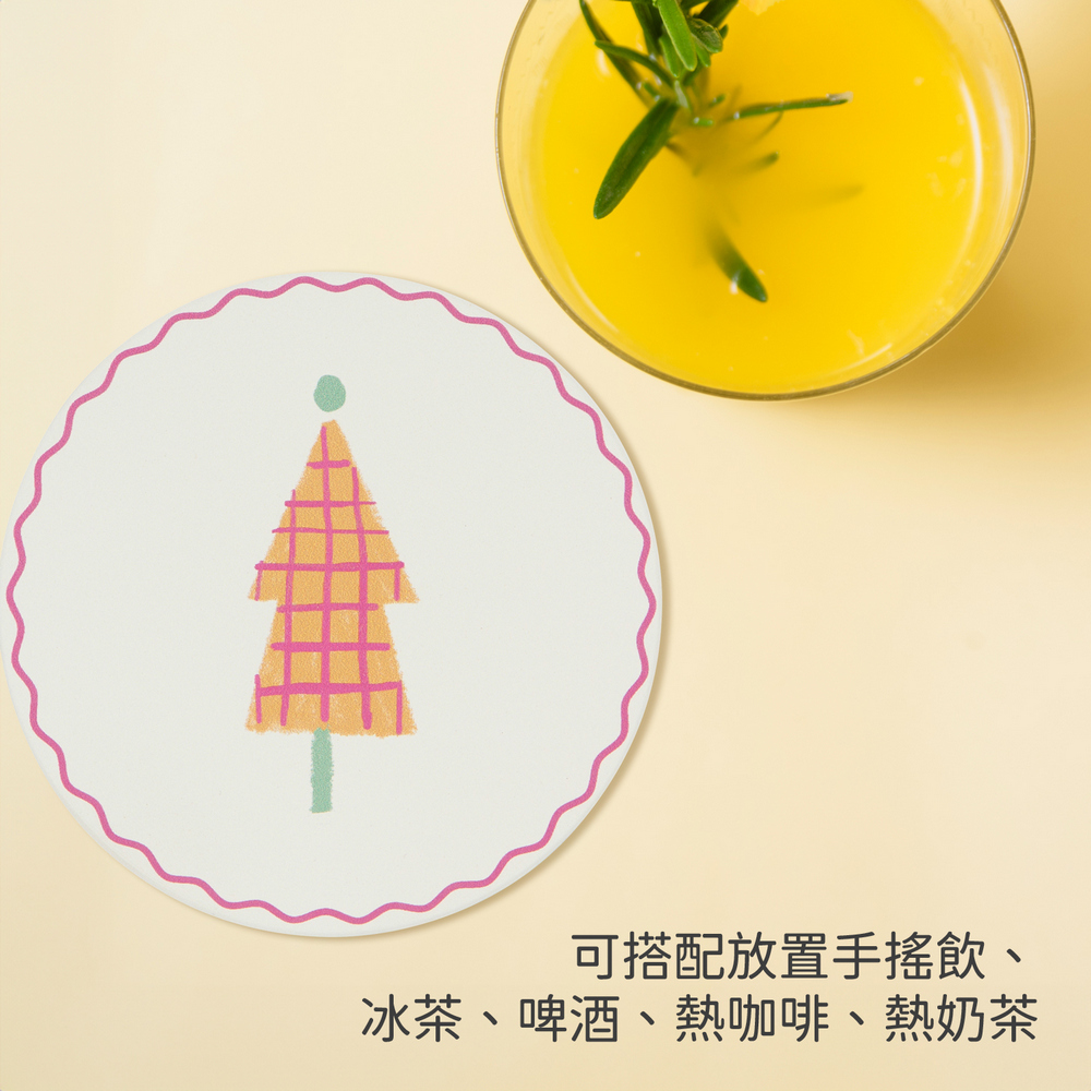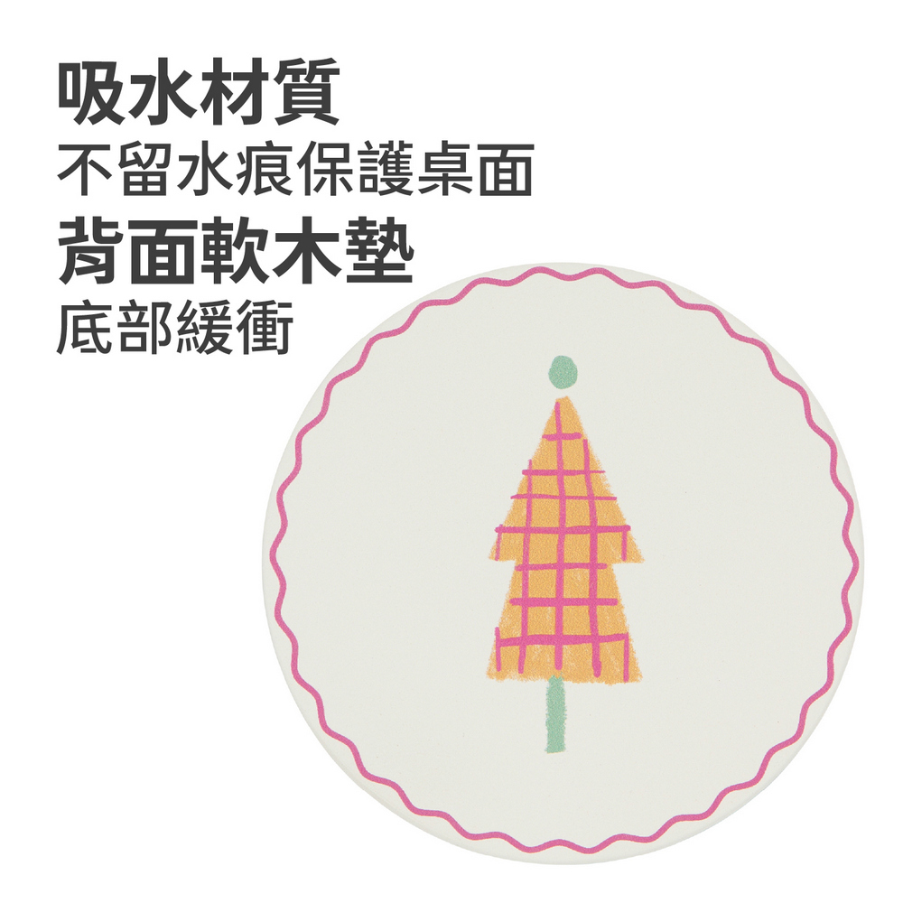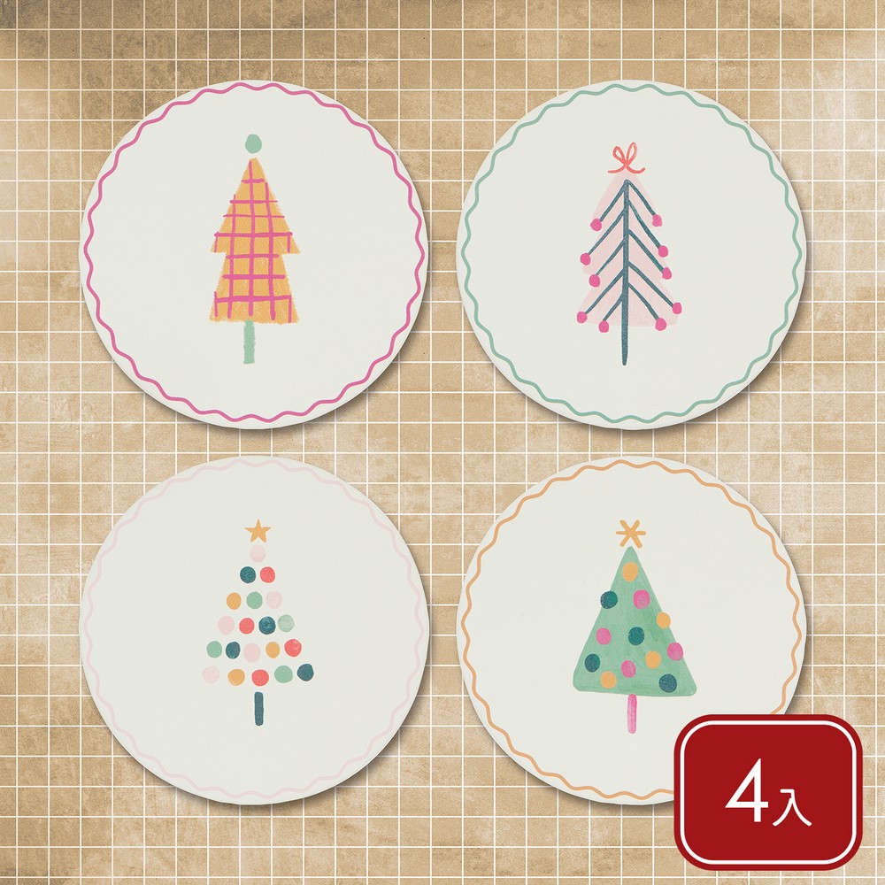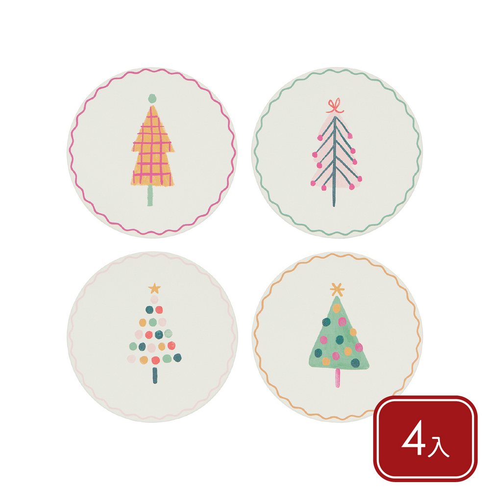 加拿大 danica studio - Jubilee白雲石吸水杯墊4入(聖誕樹) / 咖啡杯墊 飲料墊 水杯墊 茶墊