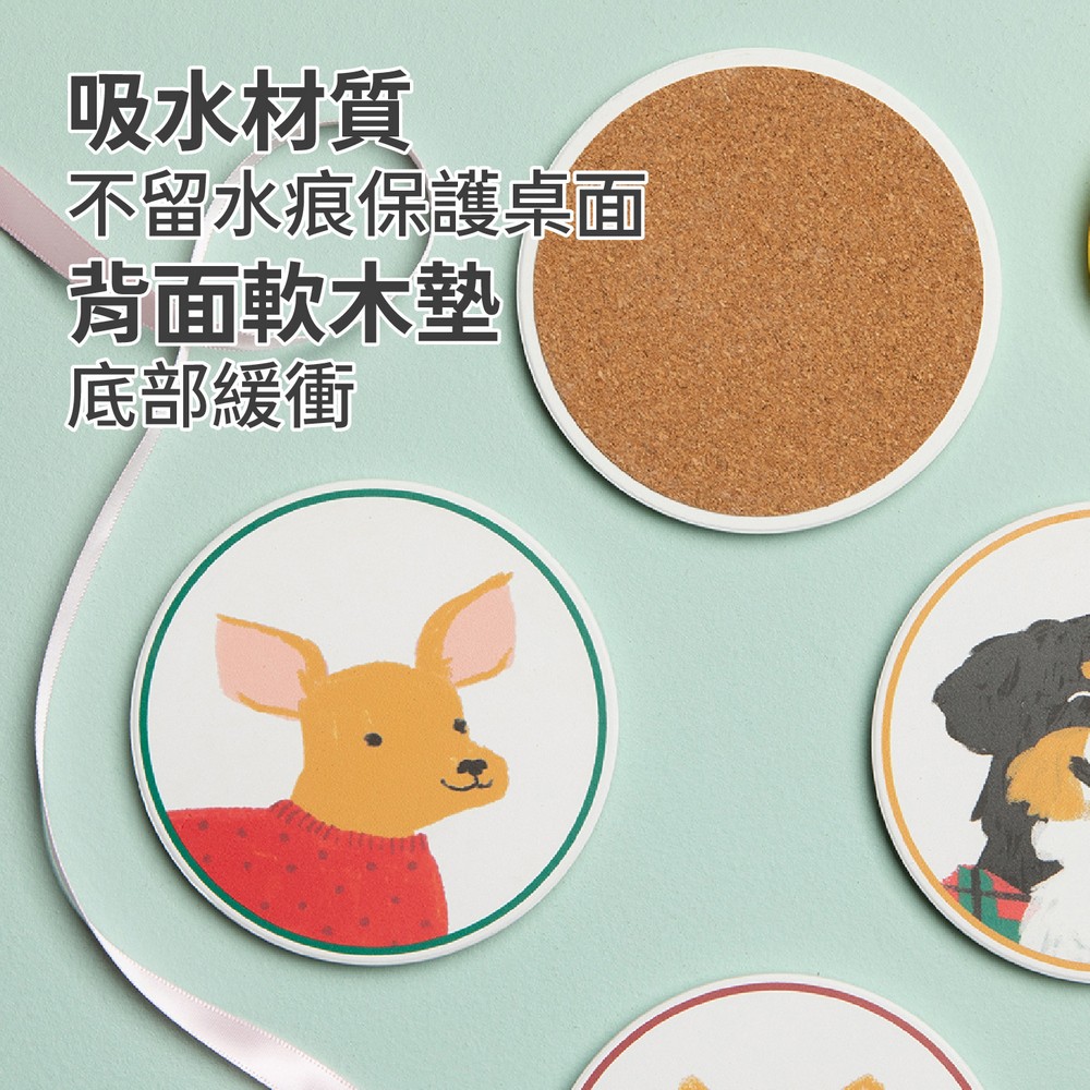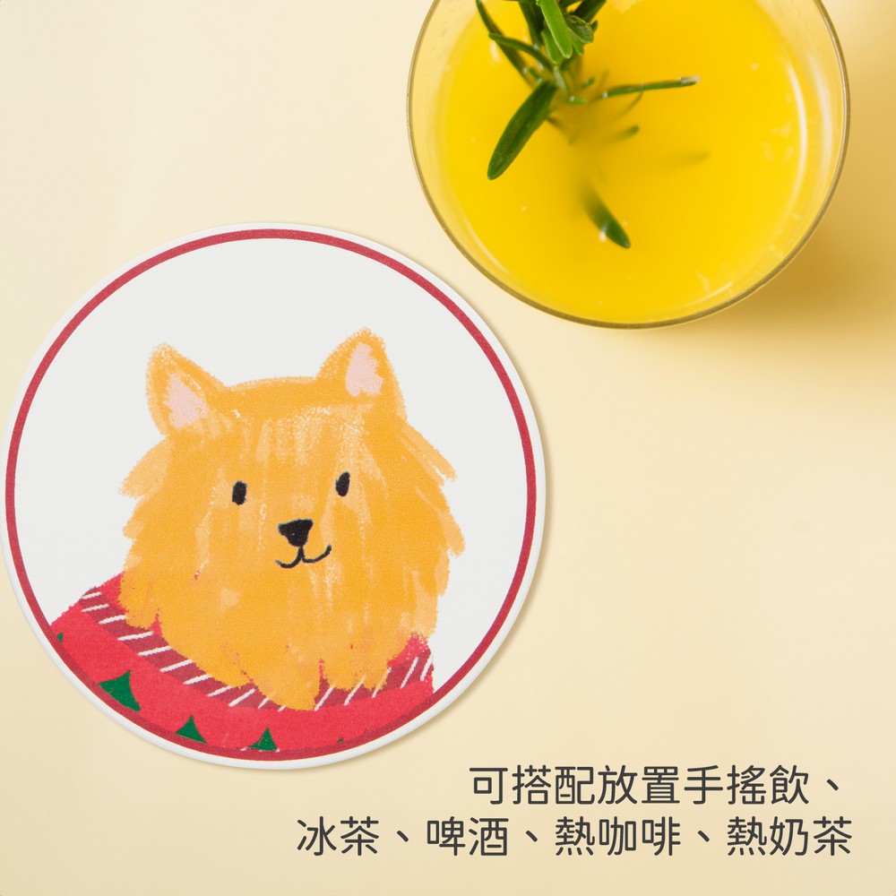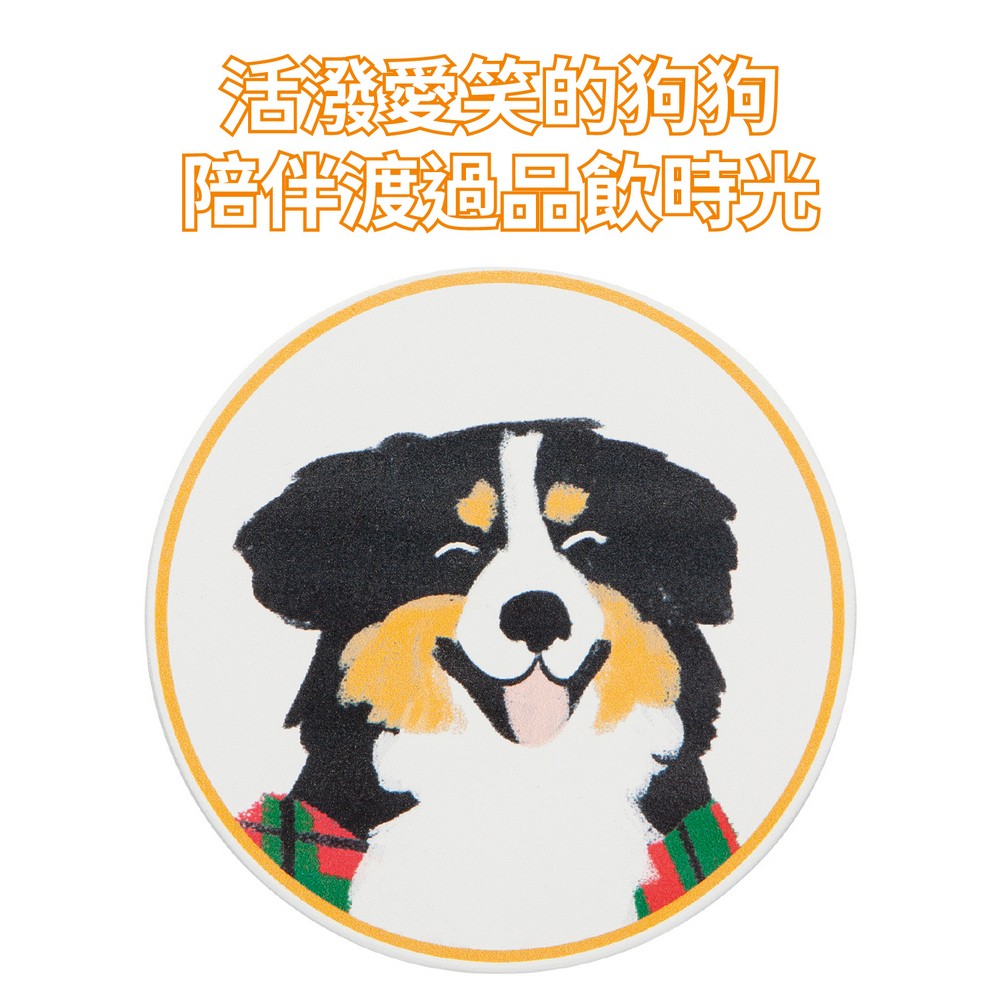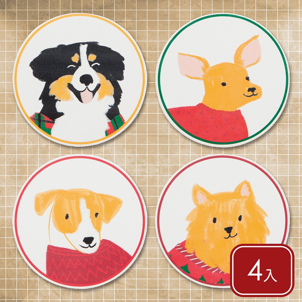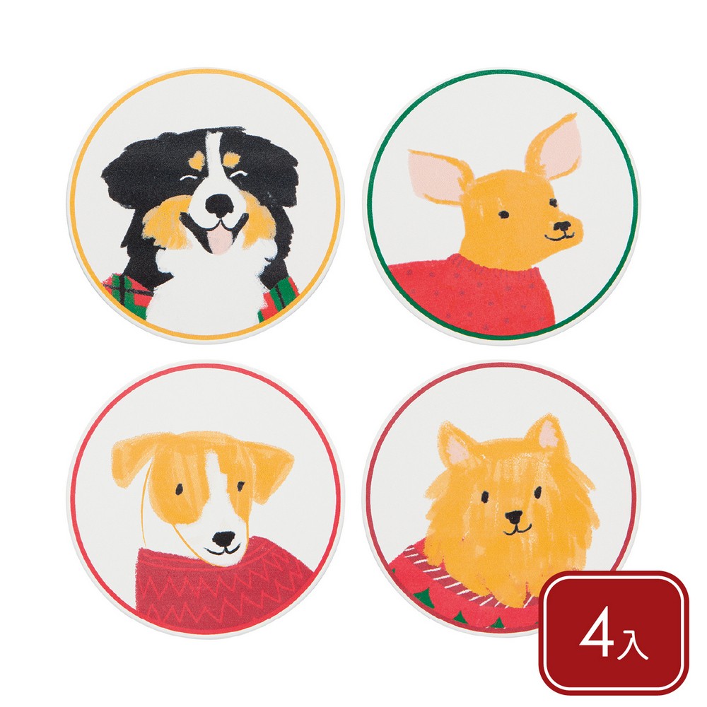 加拿大 danica studio - Jubilee白雲石吸水杯墊4入(開朗狗兒) / 咖啡杯墊 飲料墊 水杯墊 茶墊
