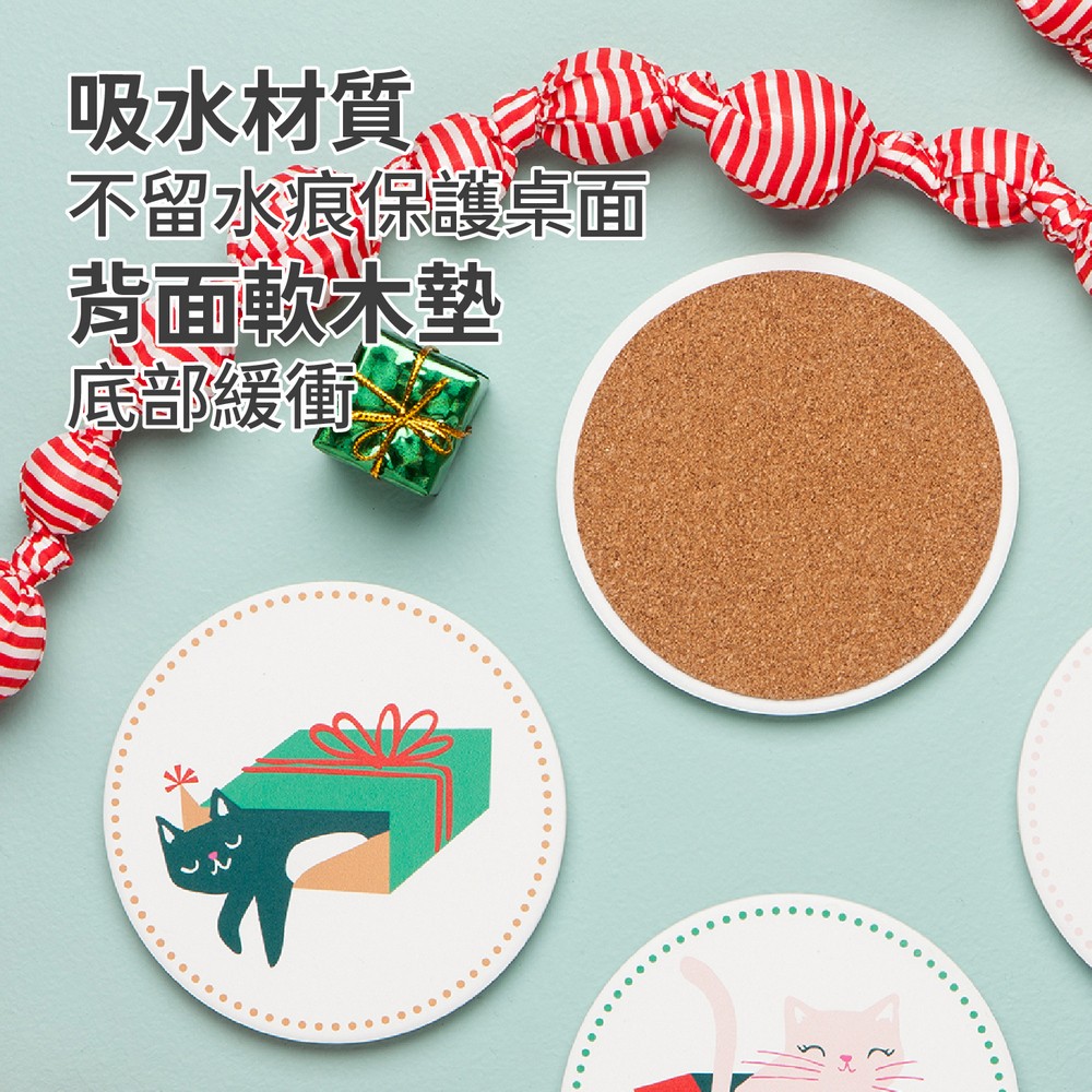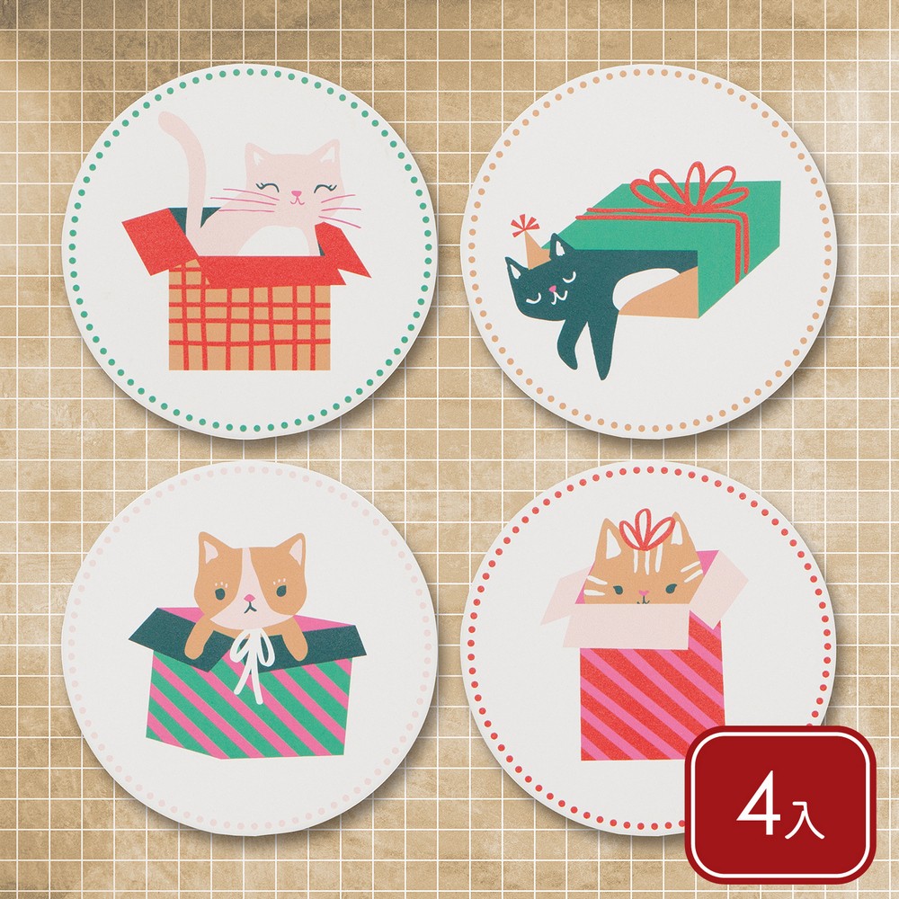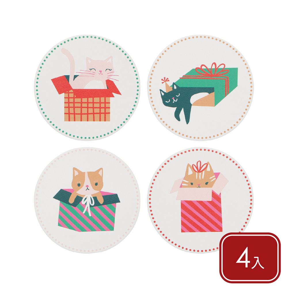 加拿大 danica studio - Jubilee白雲石吸水杯墊4入(貓咪禮盒) / 咖啡杯墊 飲料墊 水杯墊 茶墊
