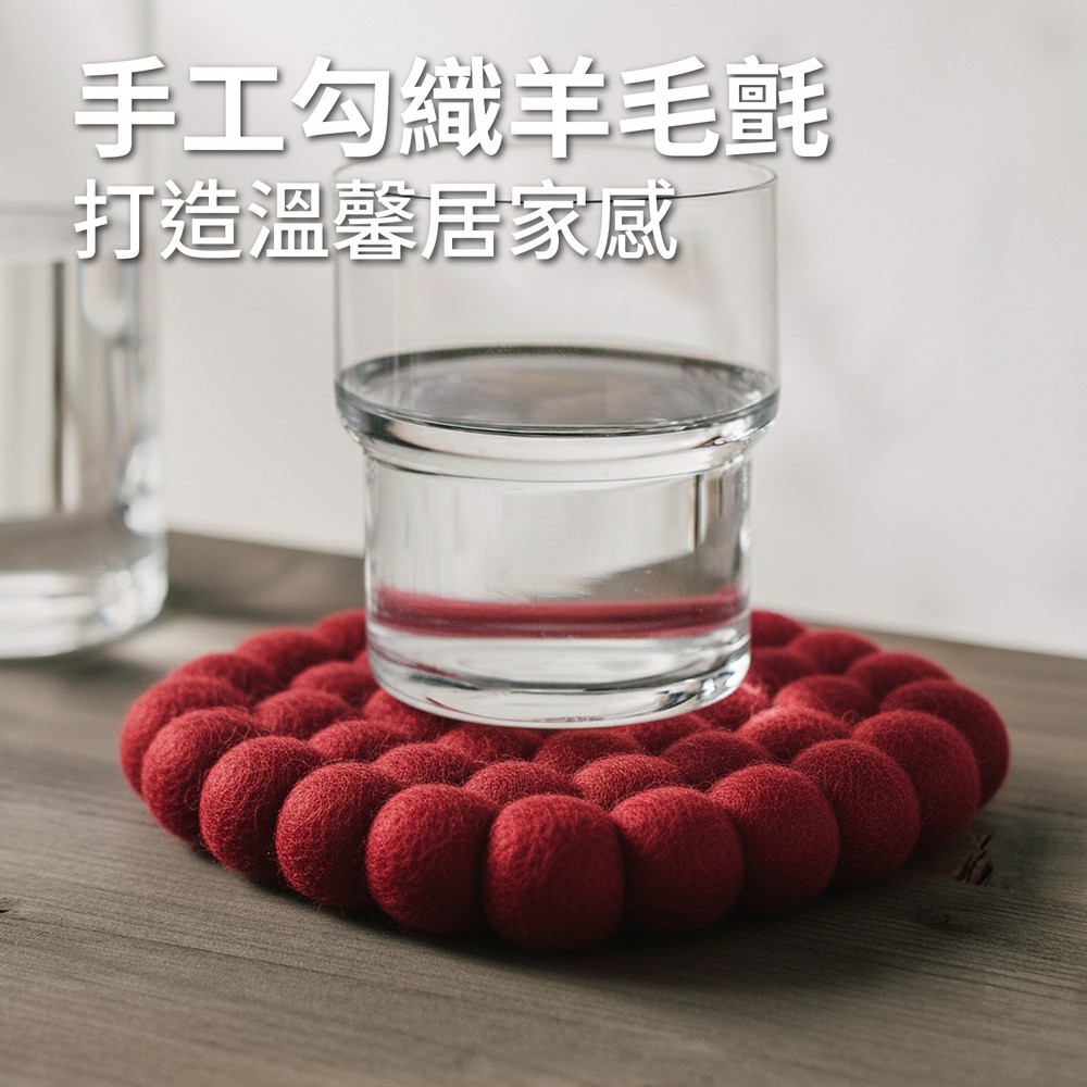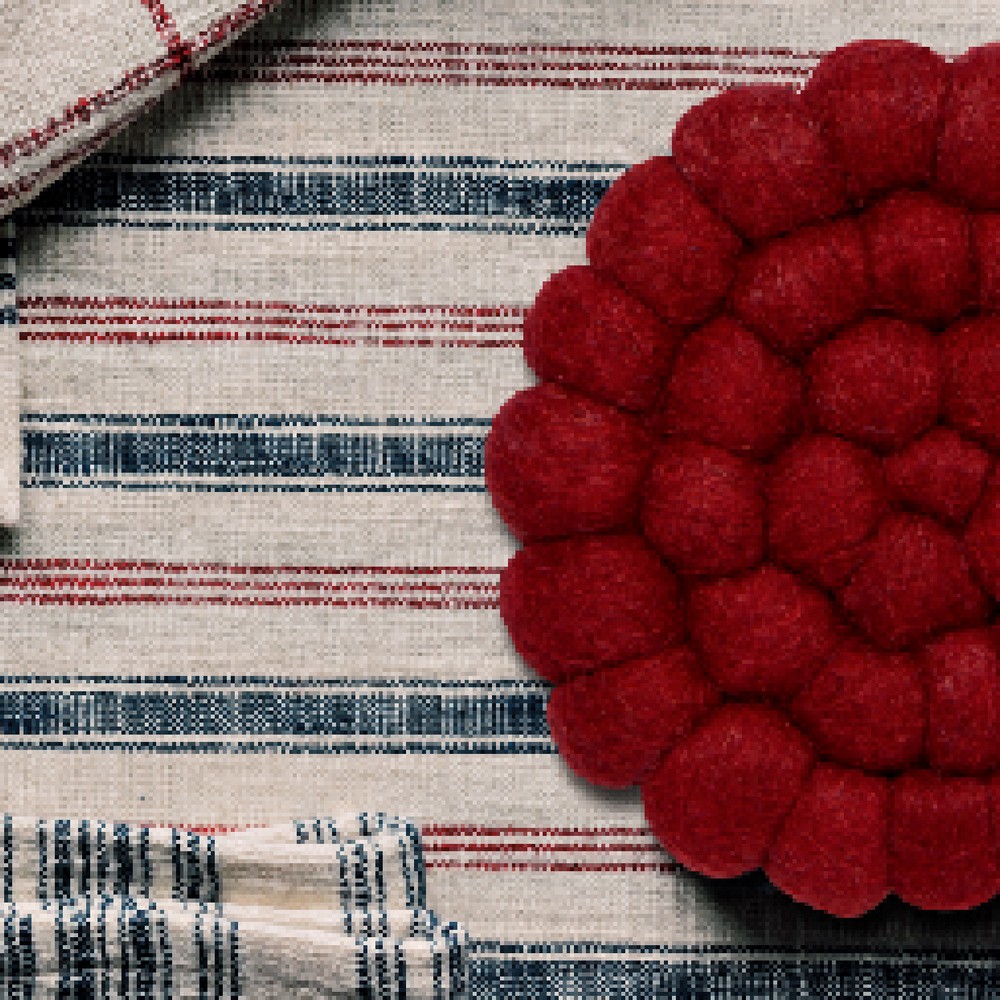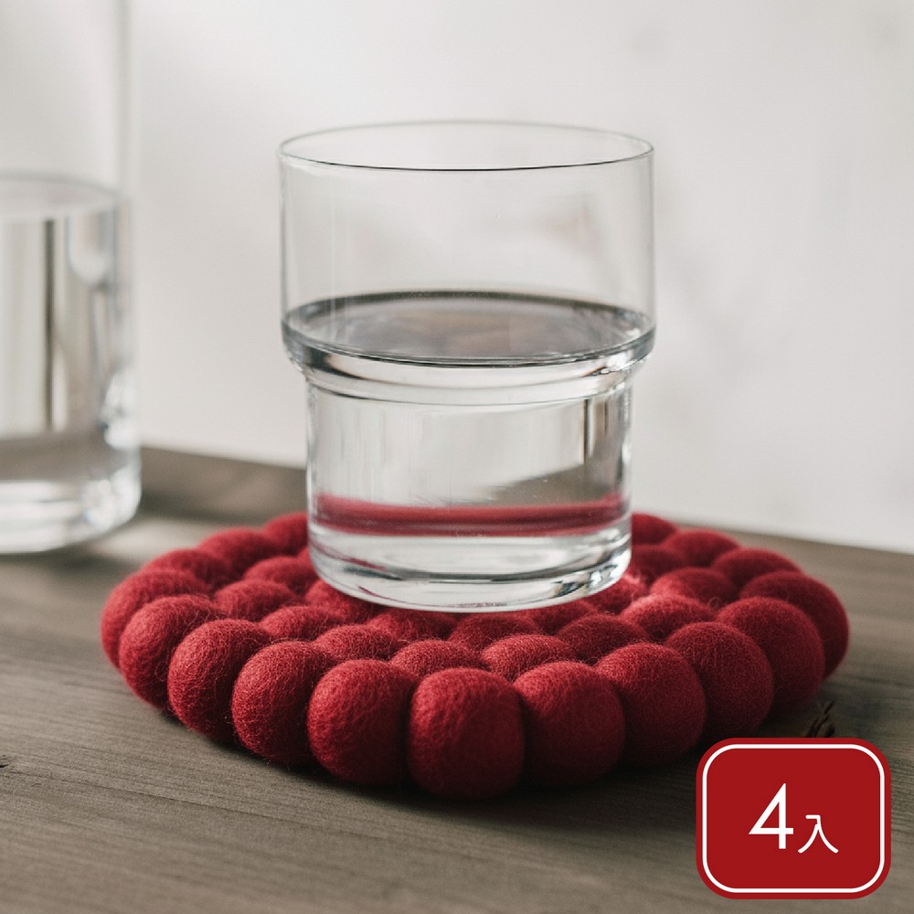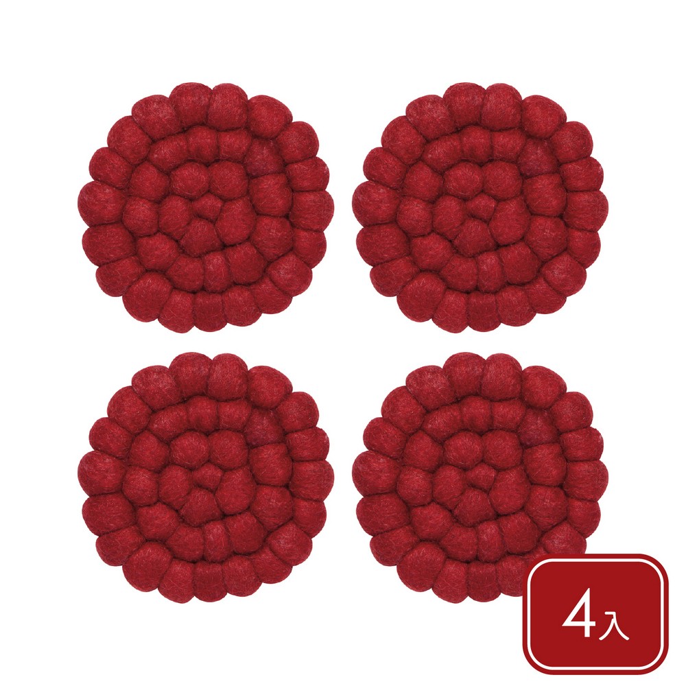 加拿大 danica studio - Heirloom羊毛氈圓杯墊4入(殷紅) / 咖啡杯墊 飲料墊 水杯墊