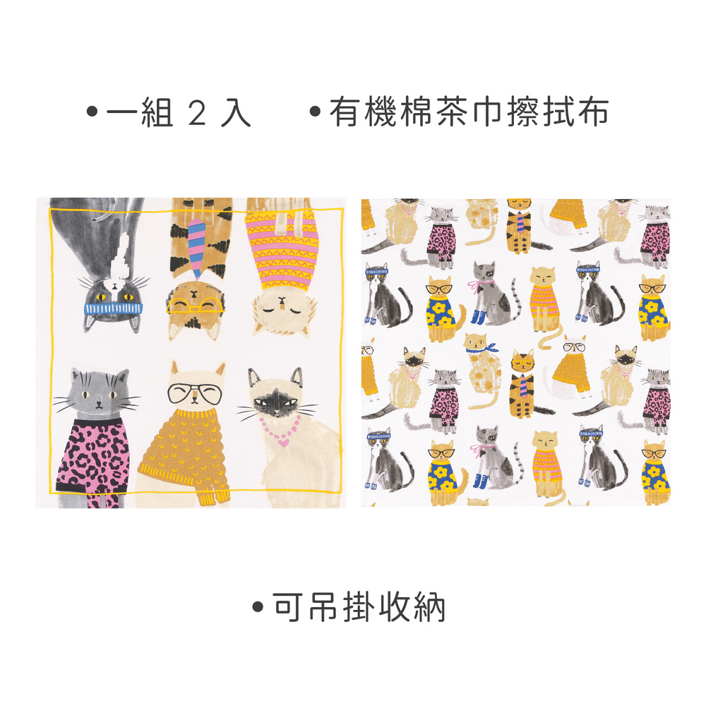 加拿大 danica studio - Jubilee有機棉茶巾擦拭布2入(復古貓63cm) / 廚房抹布 清潔布 擦拭布