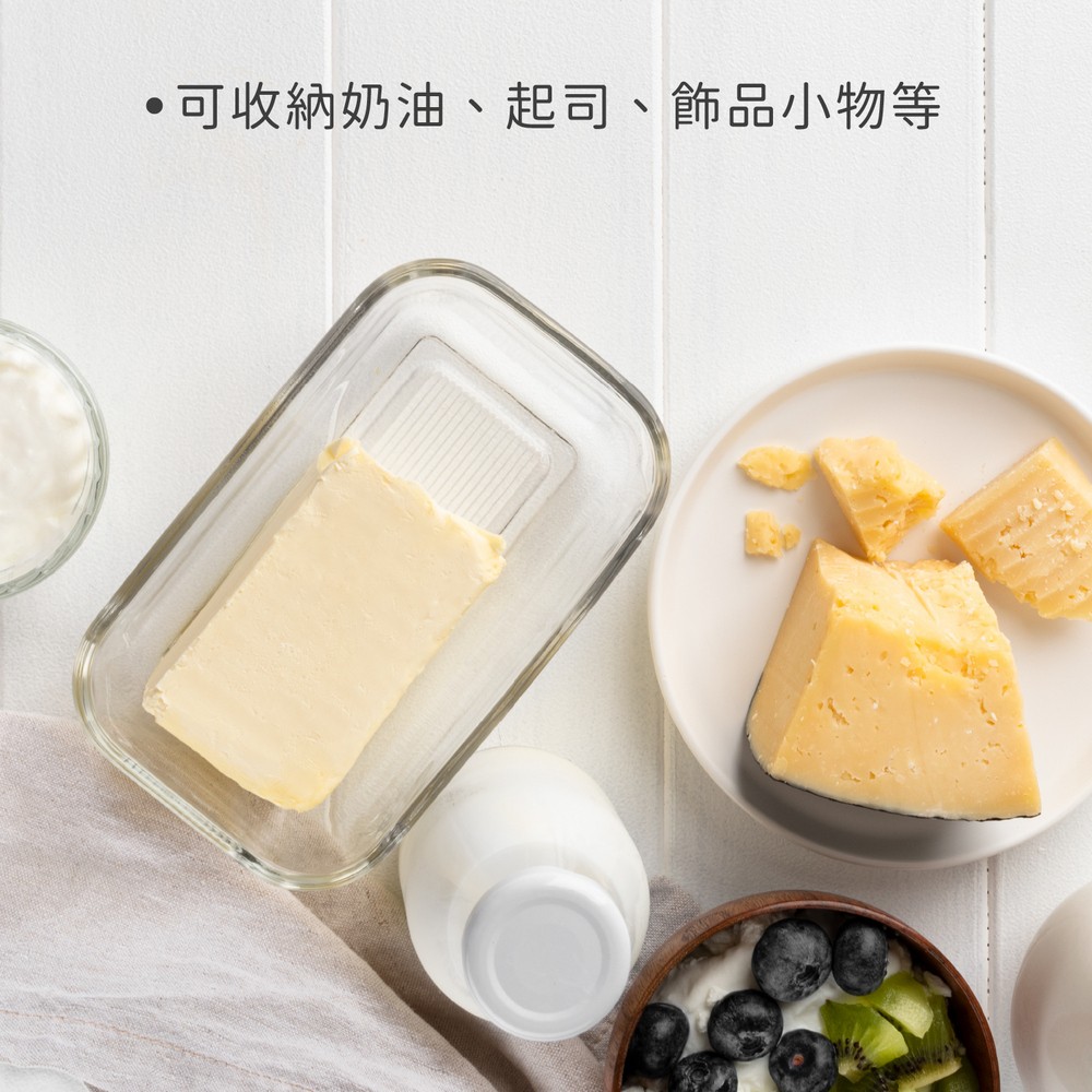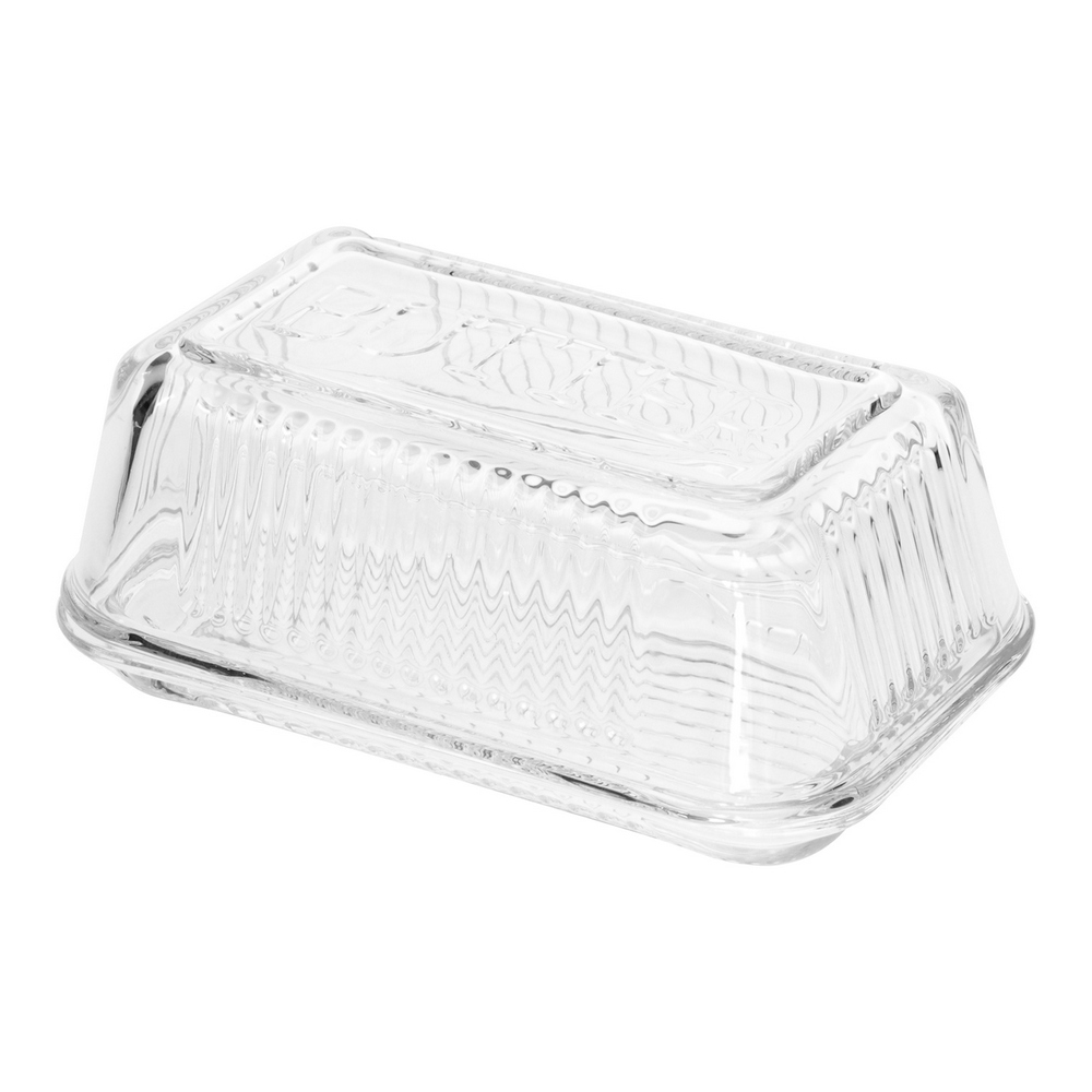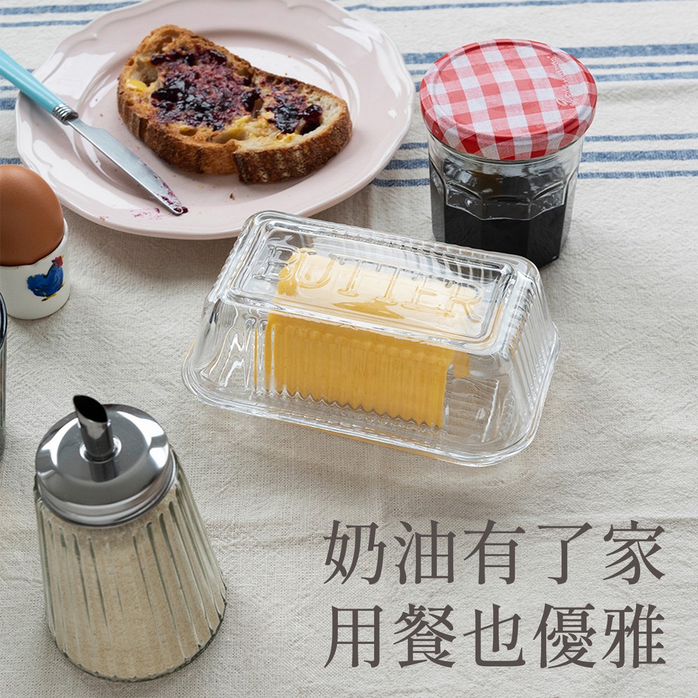 英國 Rex LONDON - 附蓋長方玻璃奶油盤(古典豎紋) / 奶油收納 點心盤 奶油收納盒