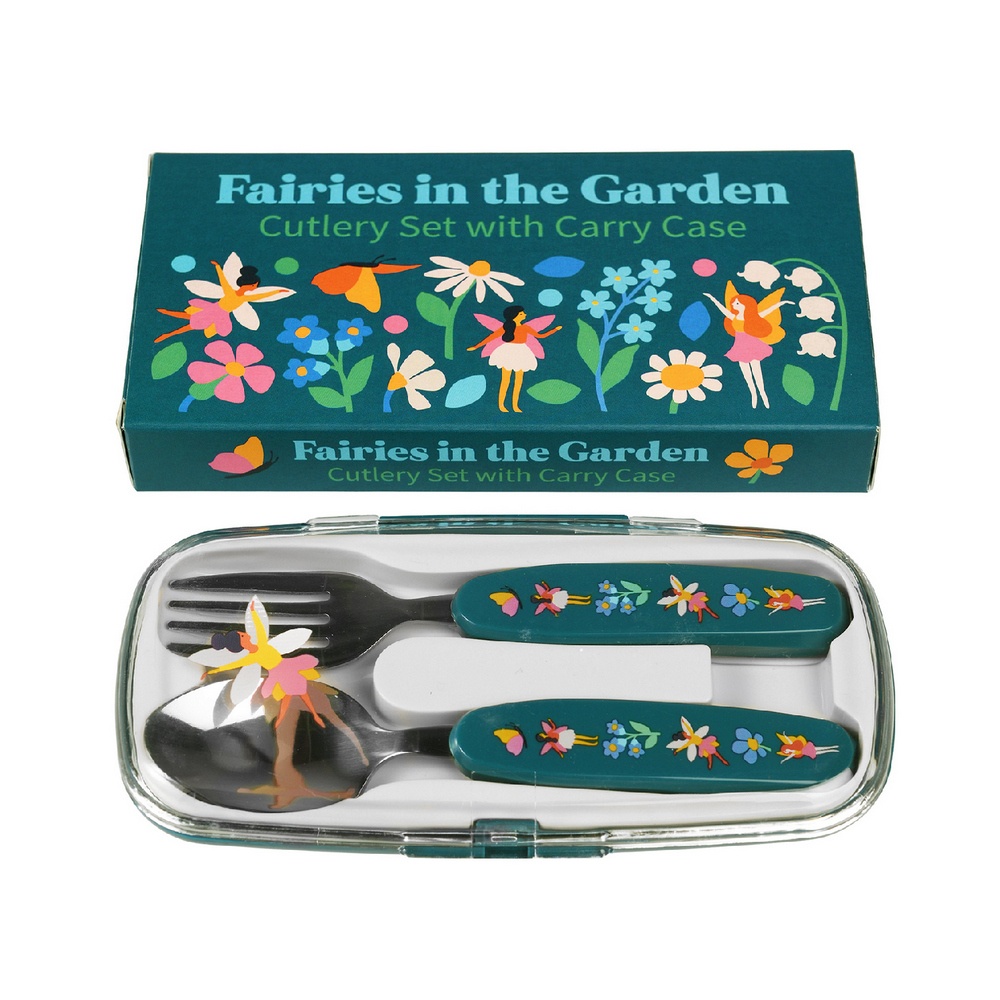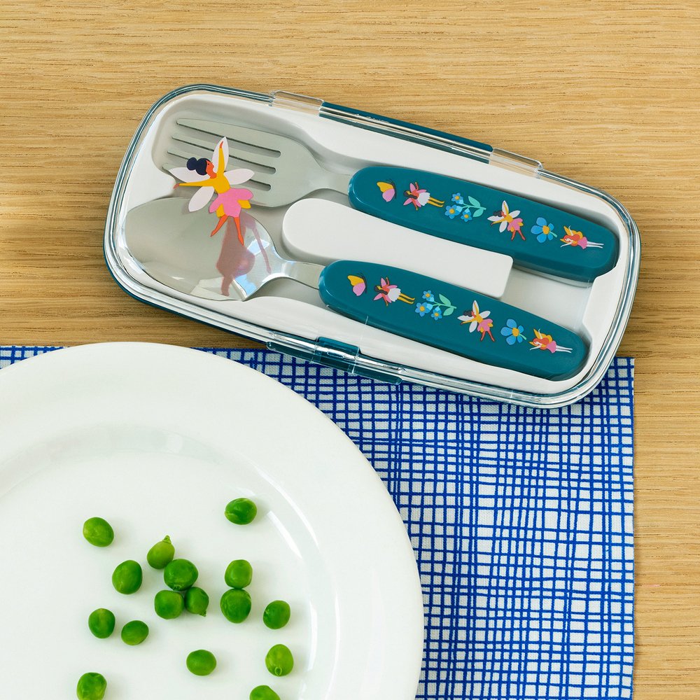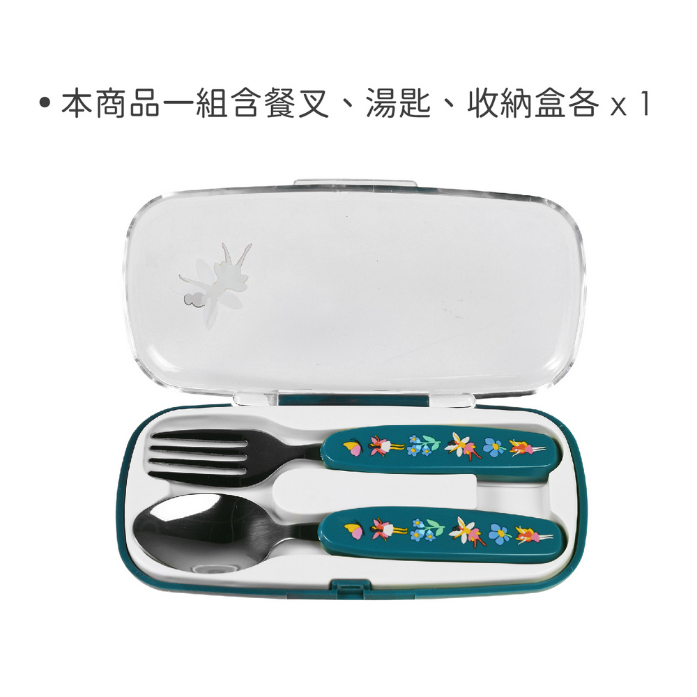 英國 Rex LONDON - 收納盒+兒童餐具2件(花園精靈) / 湯匙 叉子 餐刀