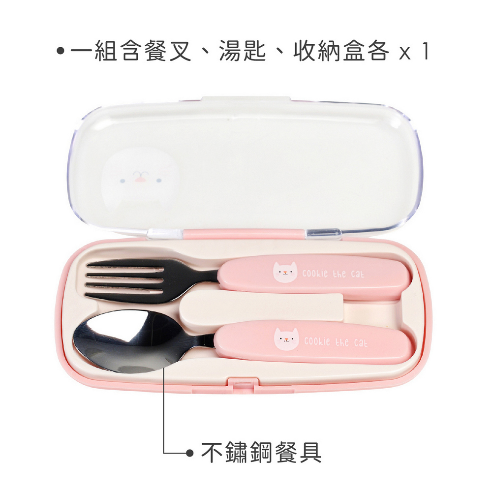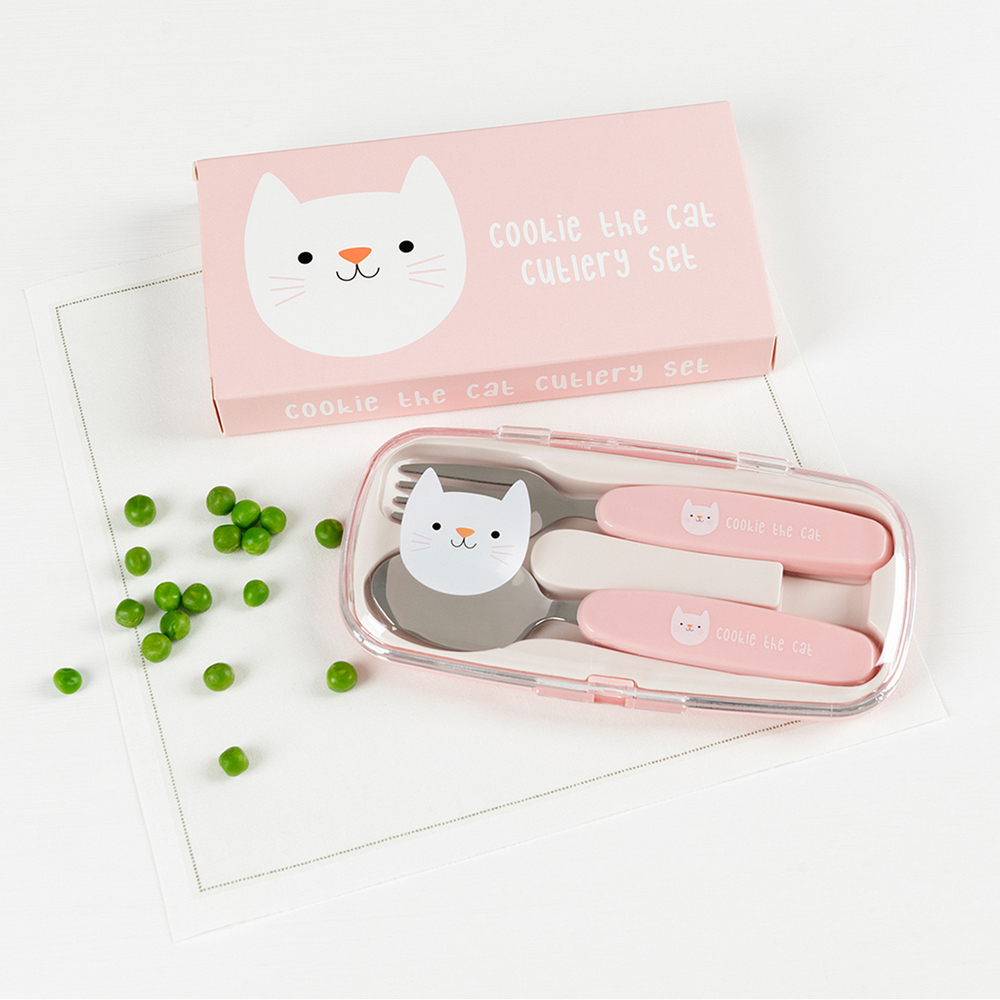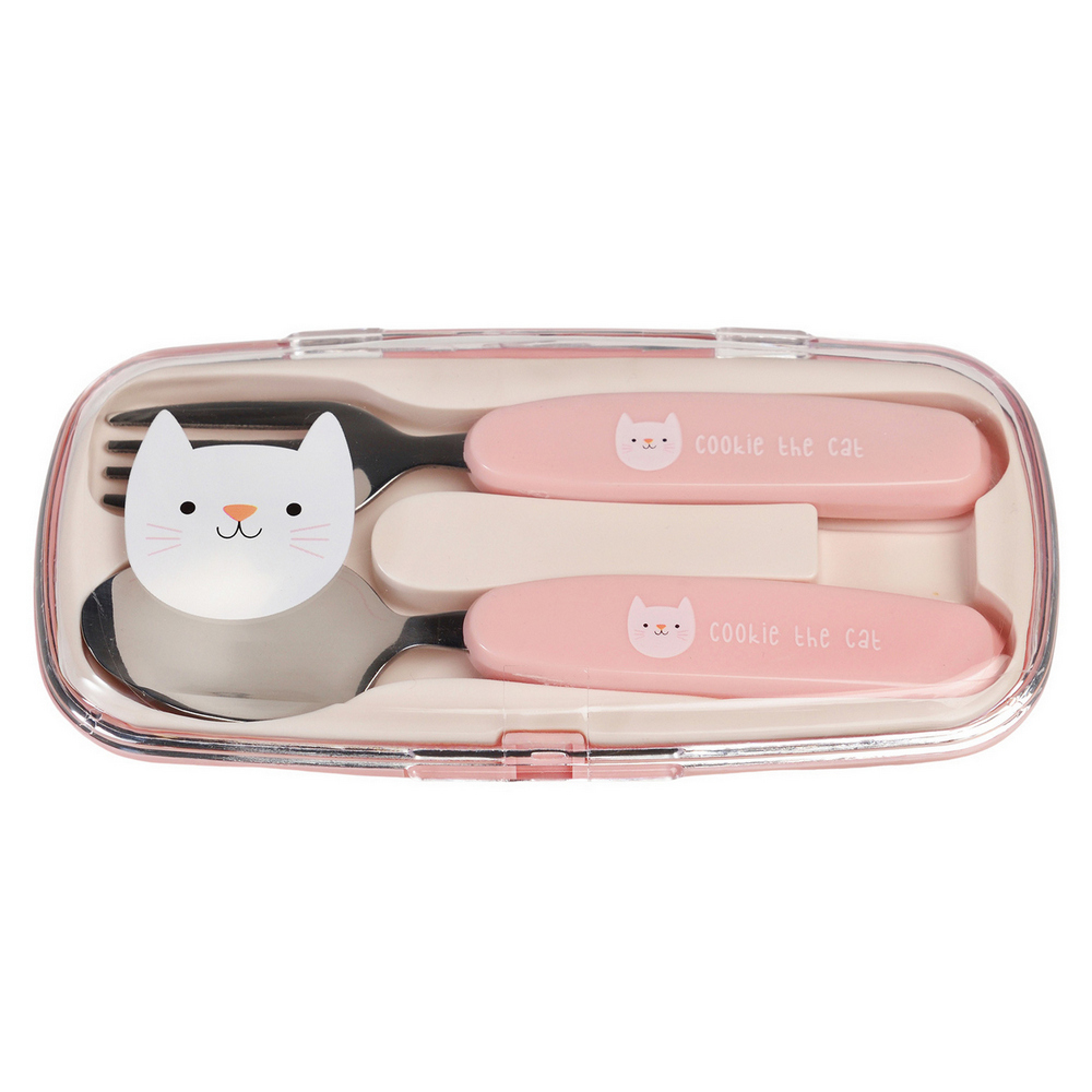 英國 Rex LONDON - 收納盒+兒童餐具2件(貓咪) / 湯匙 叉子 餐刀