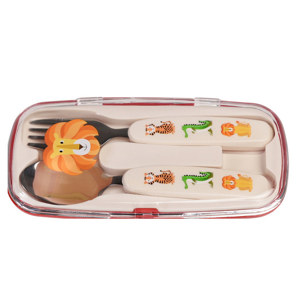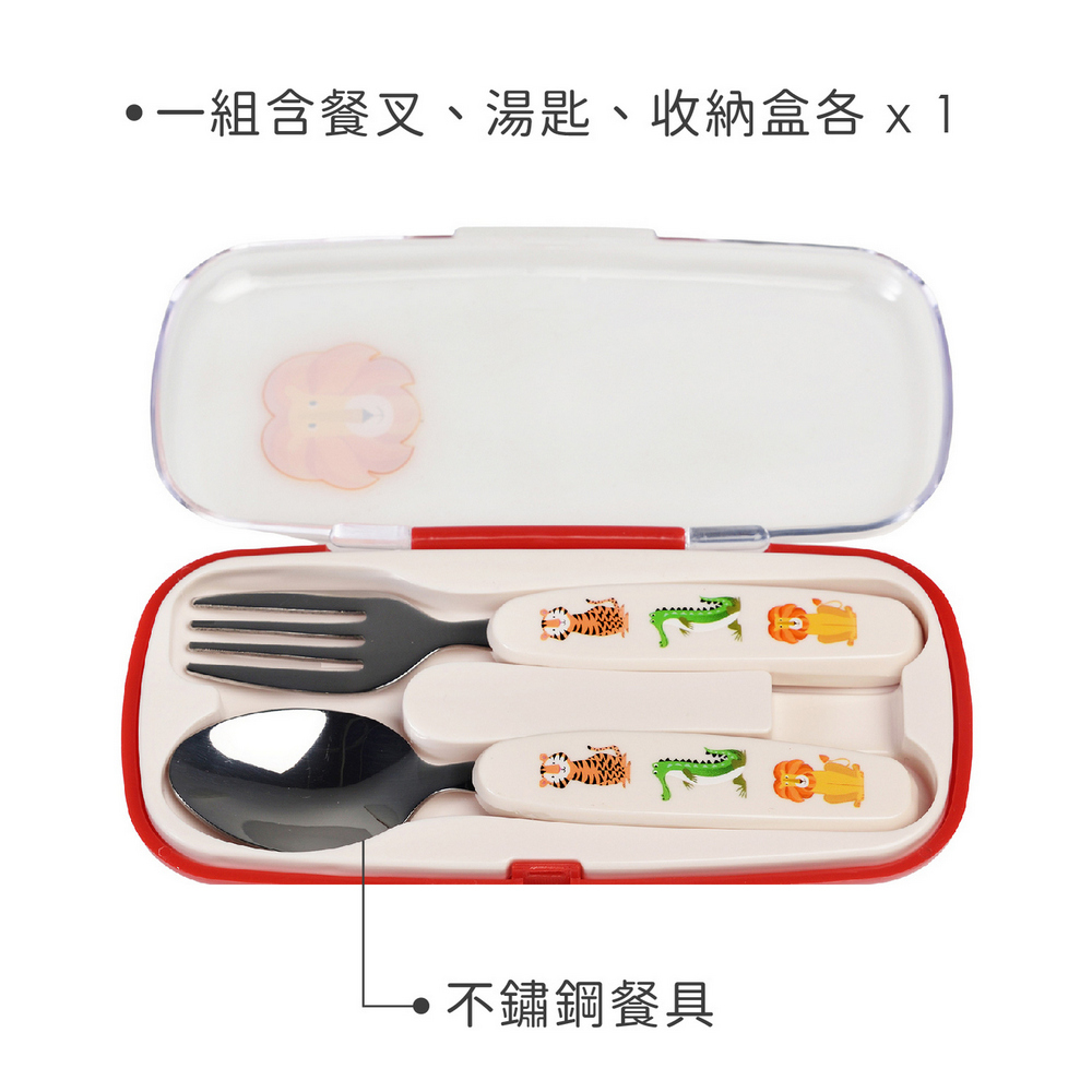英國 Rex LONDON - 收納盒+兒童餐具2件(動物園) / 湯匙 叉子 餐刀