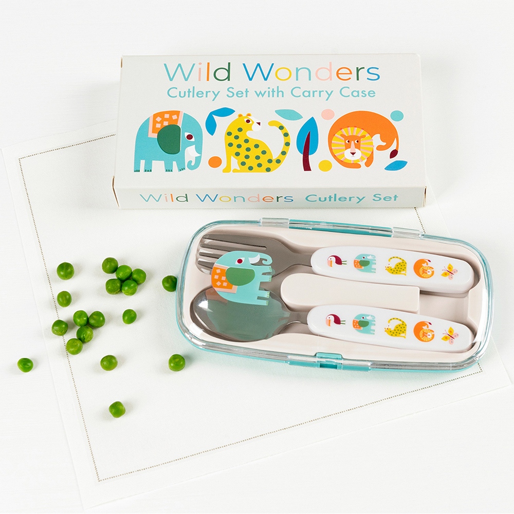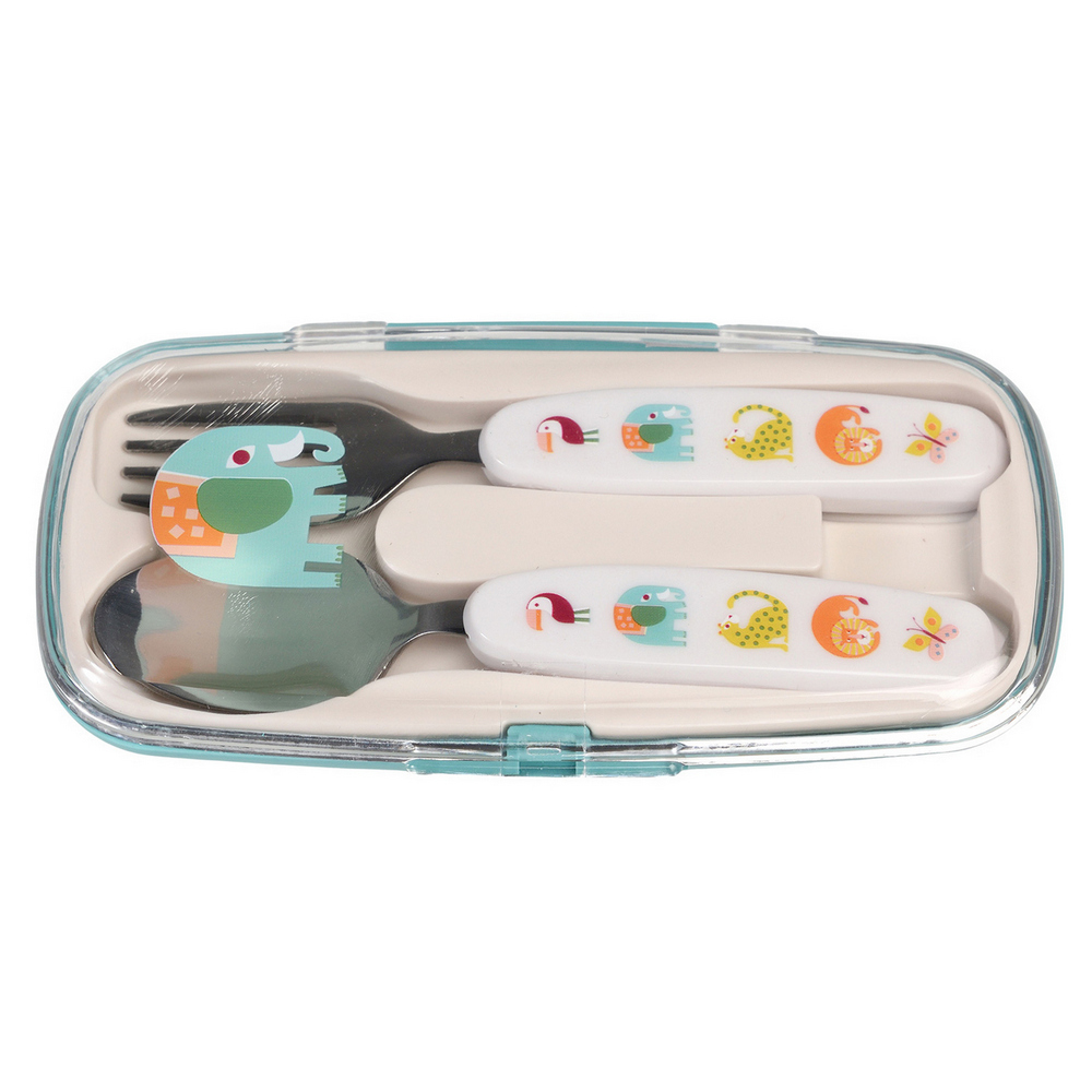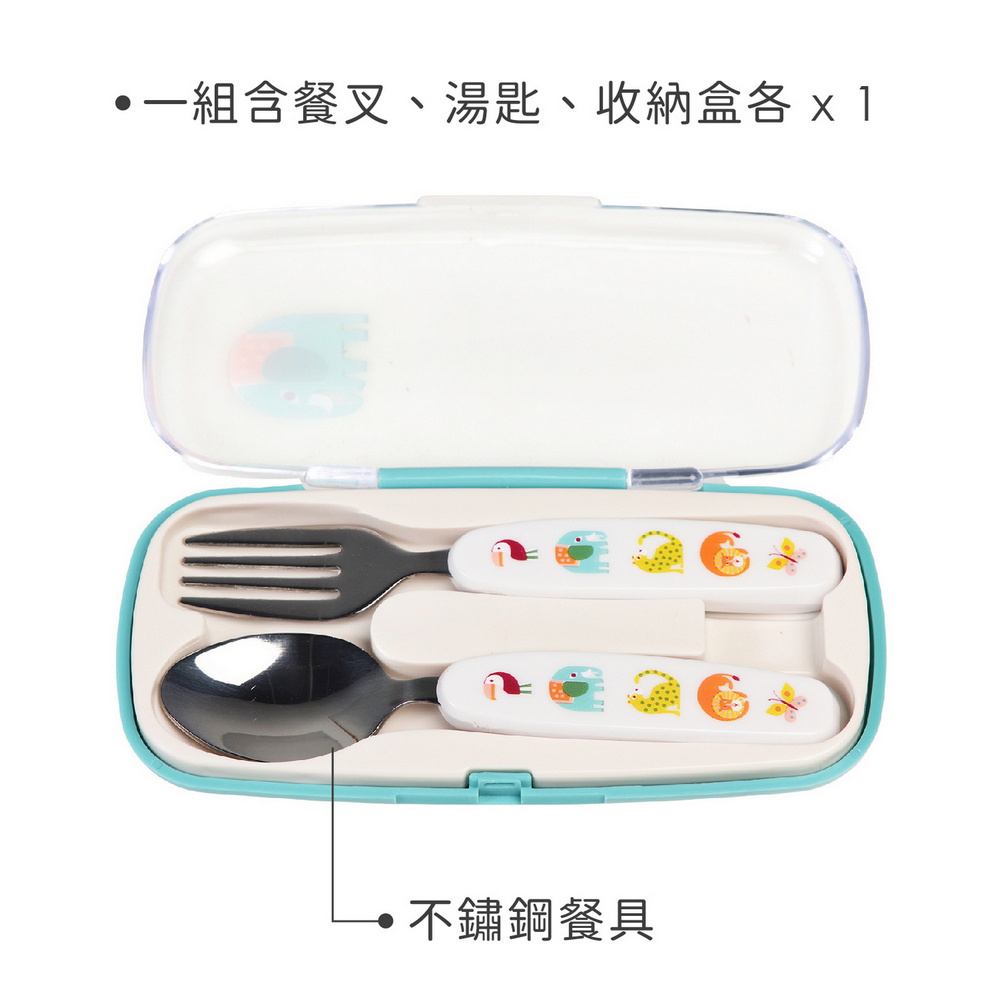 英國 Rex LONDON - 收納盒+兒童餐具2件(熱帶動物) / 湯匙 叉子 餐刀