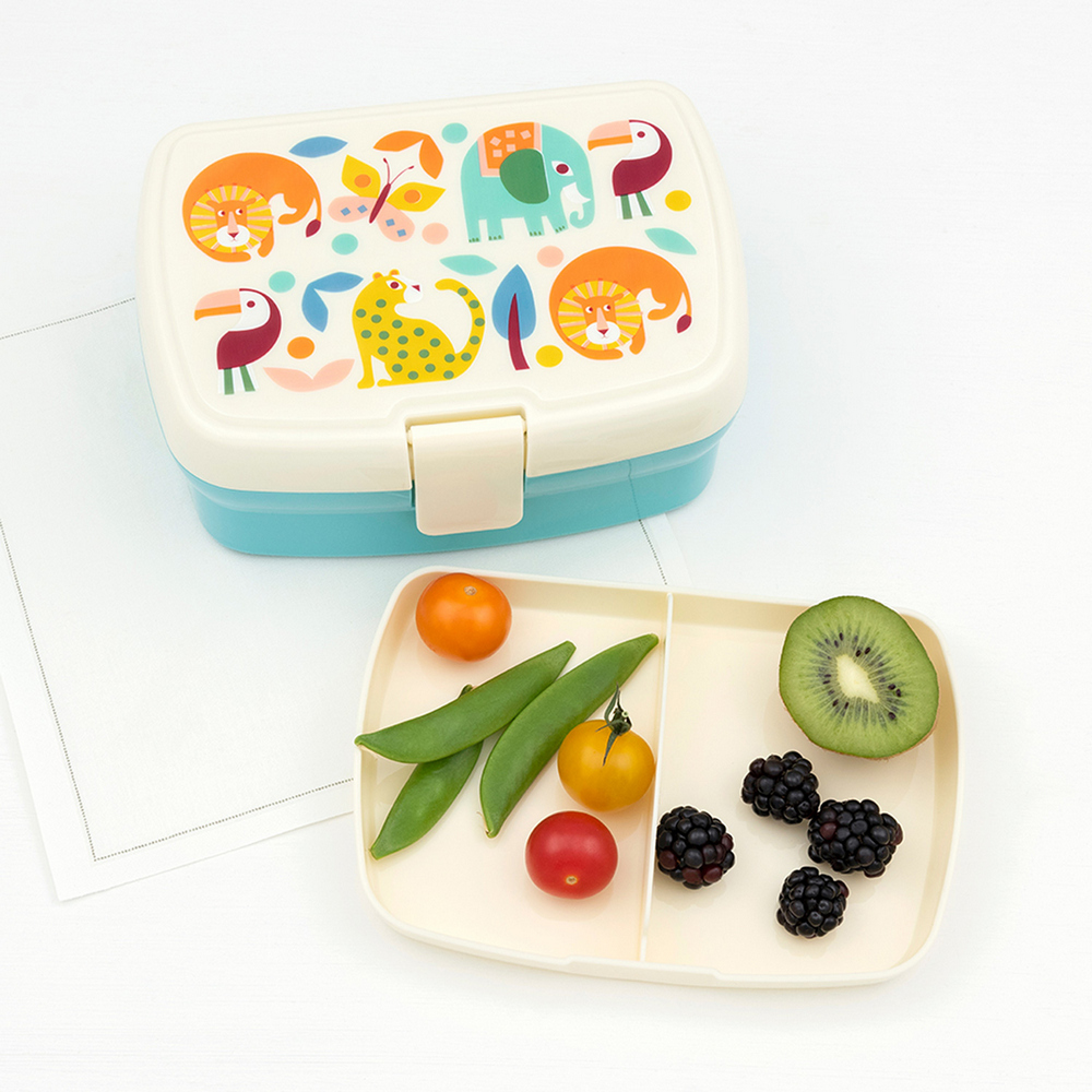 英國 Rex LONDON - 扣式雙層分格便當盒(熱帶動物) / 環保餐盒 保鮮盒 午餐盒 飯盒