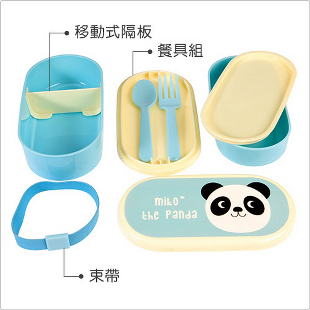 英國 Rex LONDON - 餐具+雙層兒童便當盒(熊貓) / 環保餐盒 保鮮盒 午餐盒 飯盒