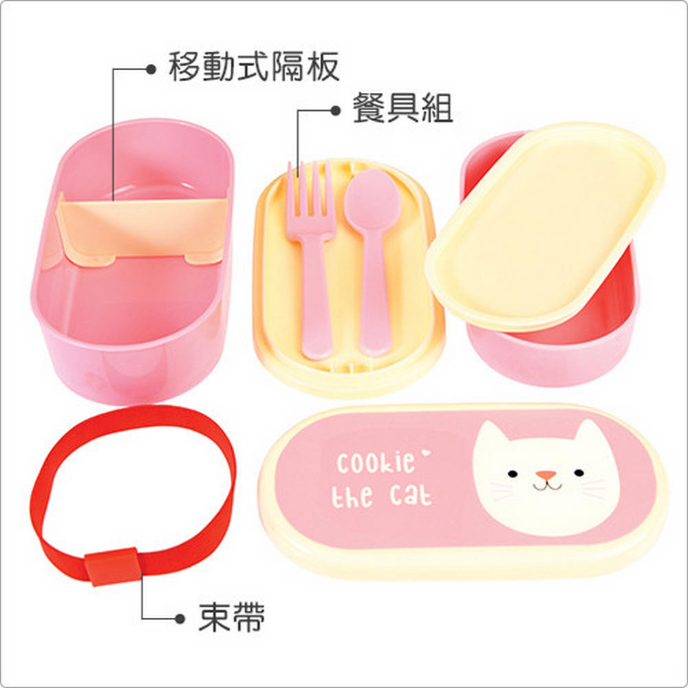 英國 Rex LONDON - 餐具+雙層兒童便當盒(貓咪) / 環保餐盒 保鮮盒 午餐盒 飯盒